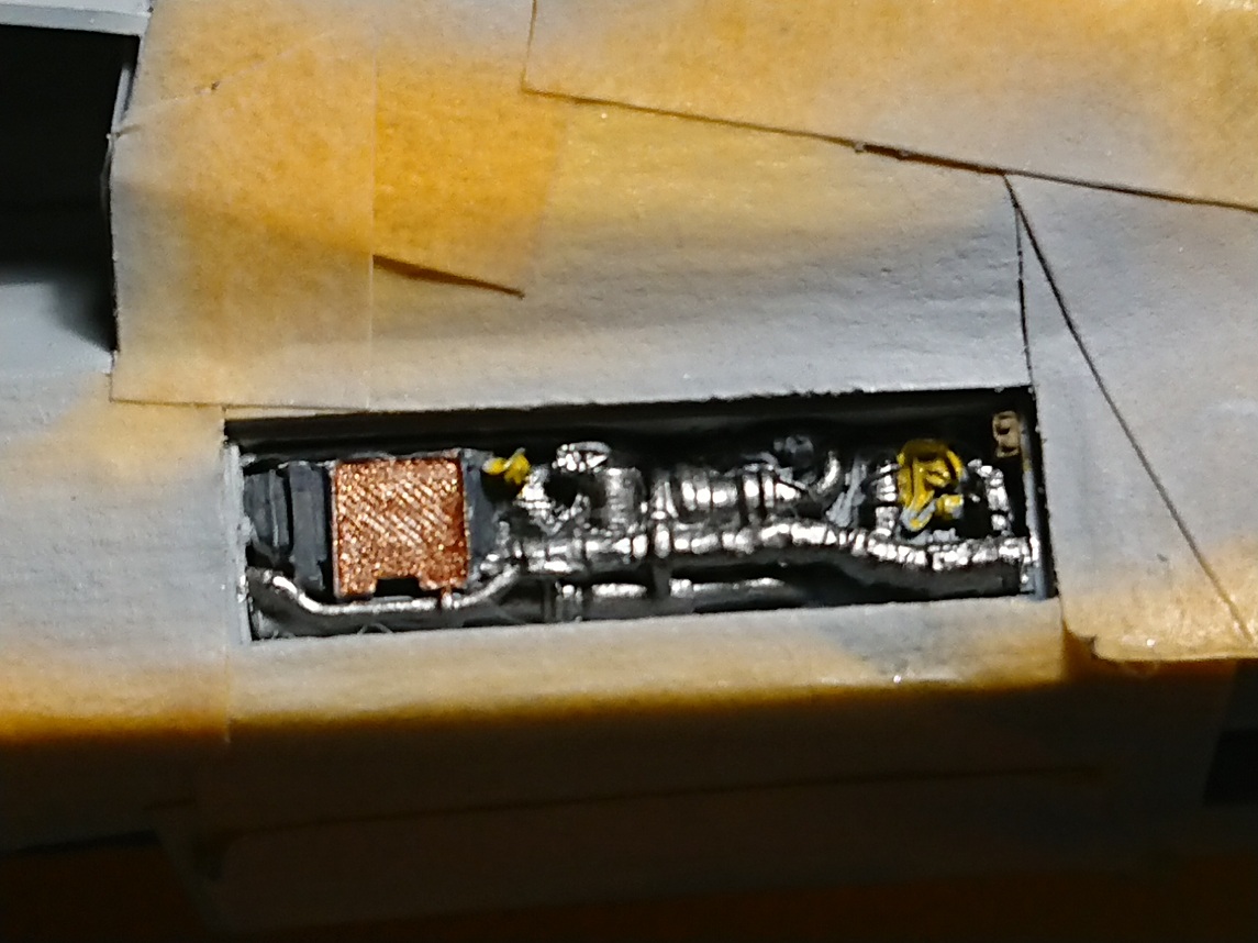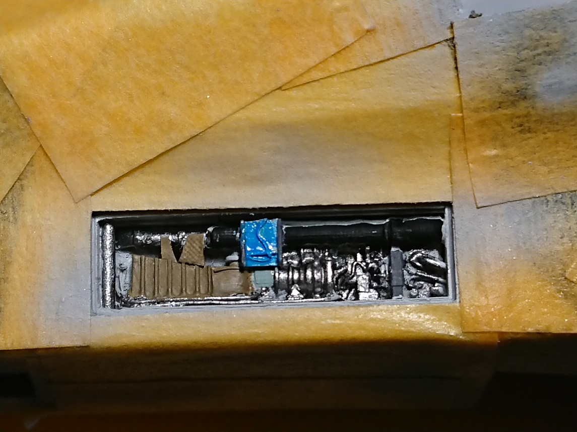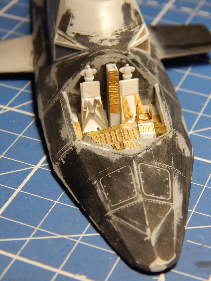Заново изготовил нижнюю часть кабины, расширил и удлинил, т.к. в старую кабину не влазили по ширине - новые катапультные кресла пилотов, небольшая приборная панель между креслами и ручка "Шаг-Газ", плюс боковые поверхности управления были ну через чур огромными.