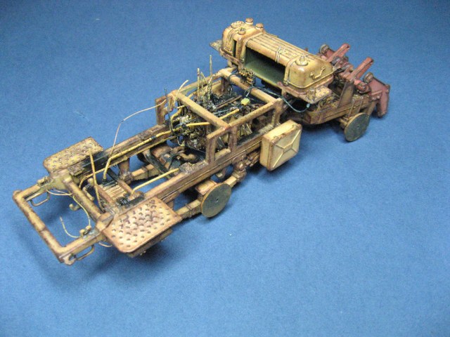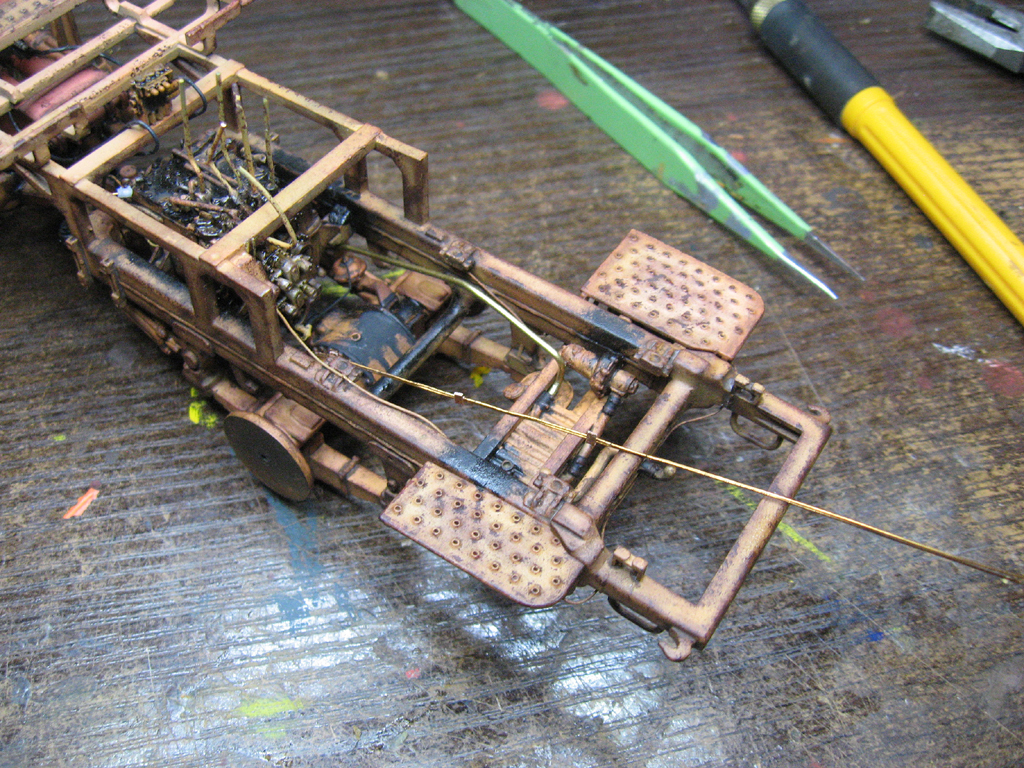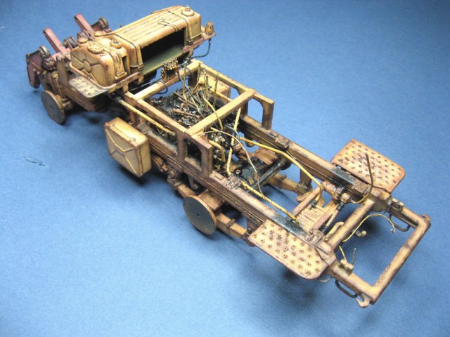 Саш, все идет от гидрораспределителя на перекладине под кабиной, но я просто сделал их петлей вокруг перекладины, чтобы обеспечить подвижность, по моему опыту. оловянная проволока при движении склонна вываливаться из вклейки, лучше ее оставлять незакрепленной с одного конца. а так шланги крепятся в гайки на передней части гидрораспределителя.
