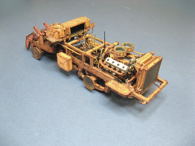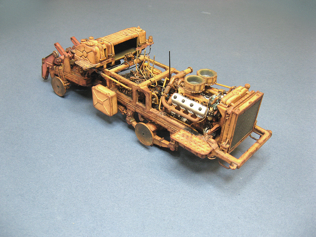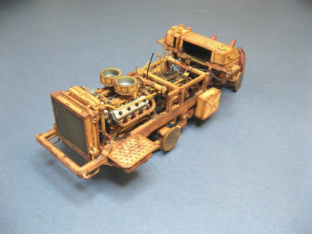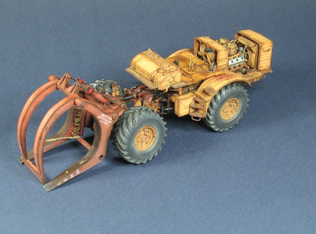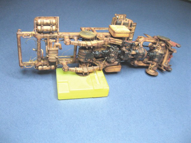 Здравствуйте, коллеги по хобби! Решил собрать Кировец от Red Iron, модель только недавно вышла. Это 3д растишка с невероятной детализацией. Хочу сделать подуставшего старичка, какими я запомнил "Горбатых" в детстве, на ходу я их почти не видел, в основном стояли на МТС уже на приколе. Первым делом инструкция предлагает собрать КПП трактора и установить на раму. Собирается все без проблем. поддержки в основном я отрываю, подрезая скальпелем только в самых нежных местах, затем сошкуриваю пупырки. Раму и коробку я окрасил в стандартной для меня технике лака для волос и аэрографирования разными оттенками. Коробку замаслил смесью МИГовского масла для моторов и черного пигмента АК.