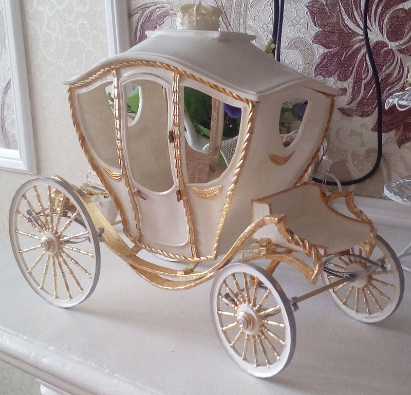 @Иван Ильин, спасибо за внимание и идею. Но "емкости" для бижутерии и ювелирки продаются на каждом шагу в любых формах - этого не хотелось. Супруга просила именно карету, а не шкатулку (хотя может она имела ввиду настоящую....)