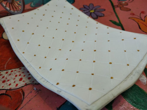 Приступил к внутреннему убранству кареты. Сделал "стеганую" обивку крыши, начал выкраивать тканевую обивку стенок. Ткань махрится здорово, пришлось наклеить на бумагу и так вырезать. Снова полезли косяки 3D модели - тонкие и нессиметричные "стойки" - в местах соединения боковых и задних стенок, боковая стенка вплотную к оконному проему.
