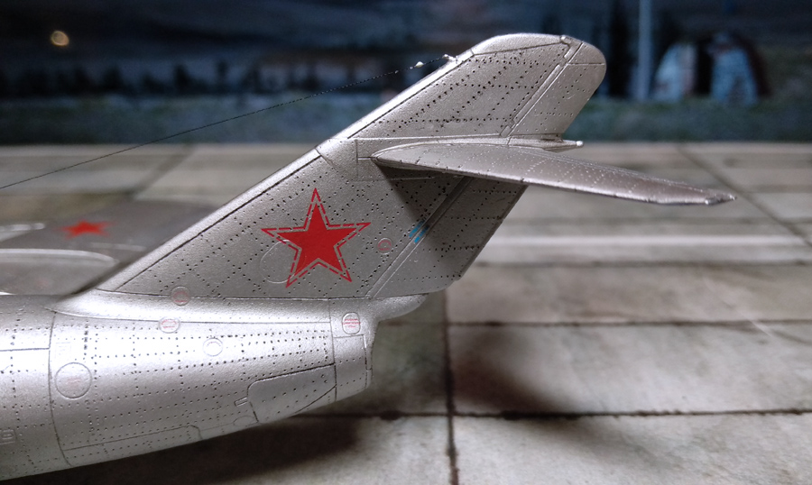 Всем привет! Из-за нехватки времени не получилось вести "сказку". Вкратце расскажу о своих продвижениях. Нанес звезды из бегемотовской декали без белой каймы. Нанес родную техничку. Зафутурил. Потом стандартно смывка на уайт-спирите. В процессе стирания смывки было повреждено ЛКП до пластика на левой консоли крыла возле крайнего гребня и тут понеслись мои муки... Не буду вдаваться в подробности скажу лишь, что попило "моей крови" эта проблемка - пришлось 4 раза перекрашивать участок крыла и каждый раз со смывкой и лакированием, т.к. каждый раз проявлялись какие-то косяки при просмотре под различными углами. И при этом пришлось сохранять уже нанесеную декаль с нужной мне "звездой", маскируя ее скотчем. В общем бяда...
