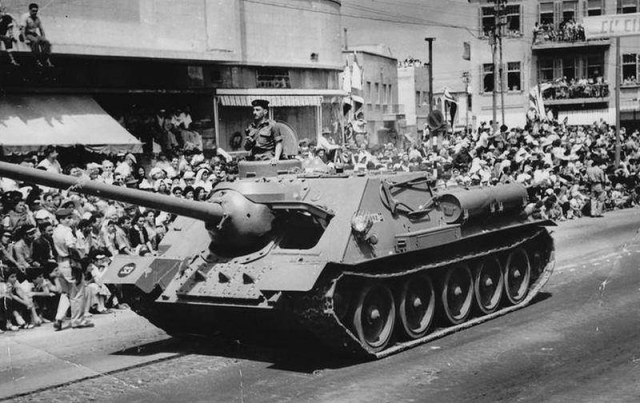 Работало следующим образом: металлические рейки (которые по ширине гусеничного трака) крепились болтами к гусеницам, так же, как и грунтозацепы, а тросы обвивались вокруг бревна. Эта приспособа часто попадается на фото послевоенной техники, и на Т-34/85 и на СУ-100. Как раз эту номенклатуру выпускали по лицензии чехи и поляки и активно продавали всяким Сириям и Вьетнамам.