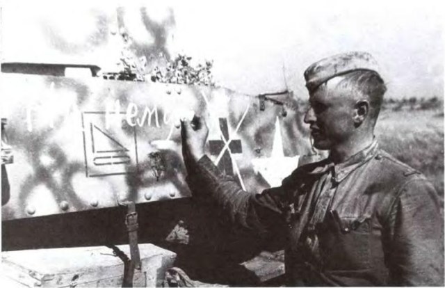 Вот ещё, камо другой, но смысл тот же, ОЗ с лозунгами как делали, так и нет. Причины могут быть разными. Например почему Пантеры Сотникова полностью не перекрасили? Может краски не хватило, а может времени.
