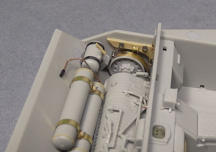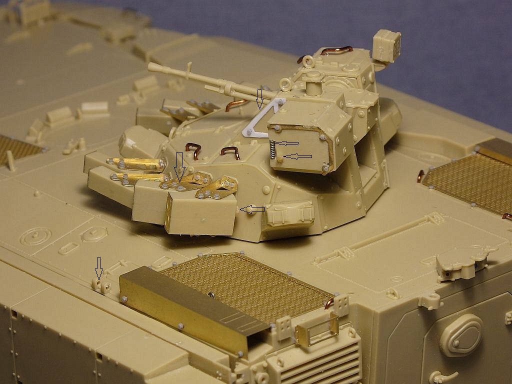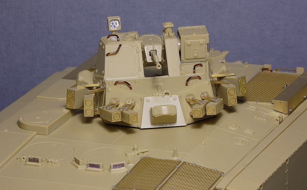 При сборке системы дымовой завесы на башне, сначала следует установить крепеж на сами блоки, а уж потом позиционировать их на башне, а не по отдельности устанавливать крепеж и, как советует инструкция. Так намного проще.