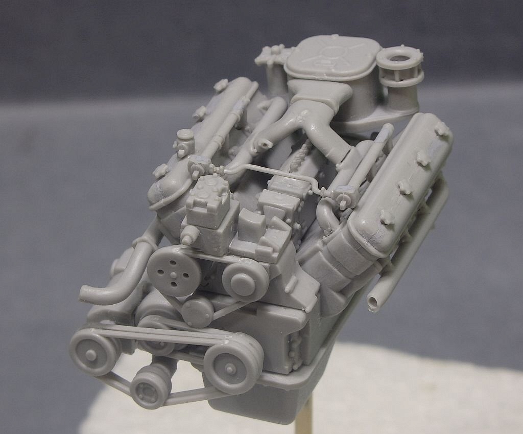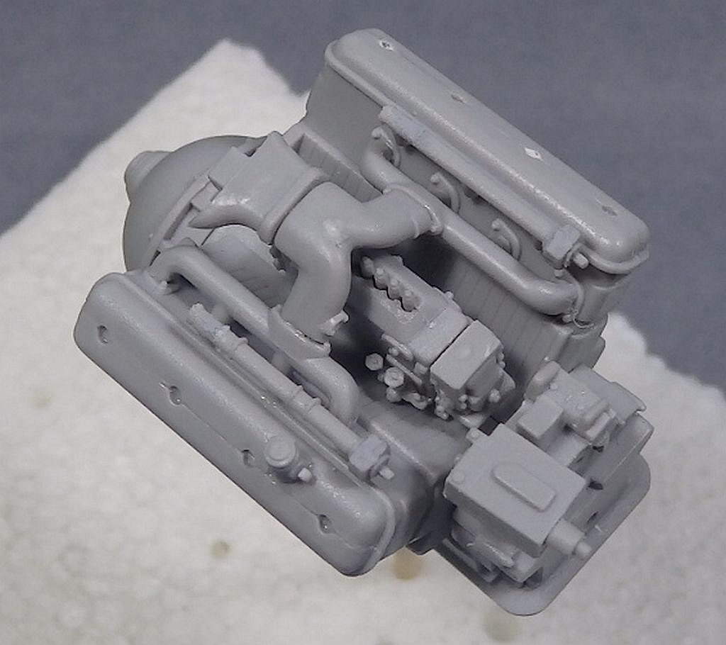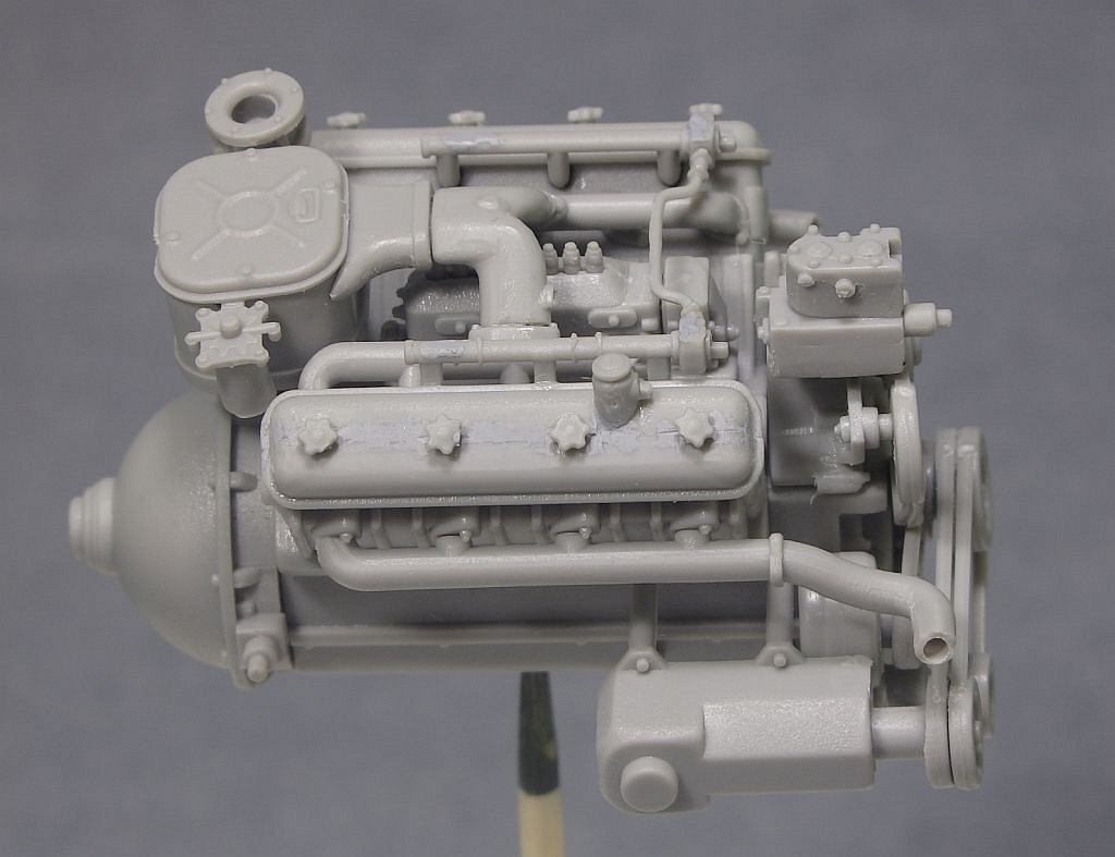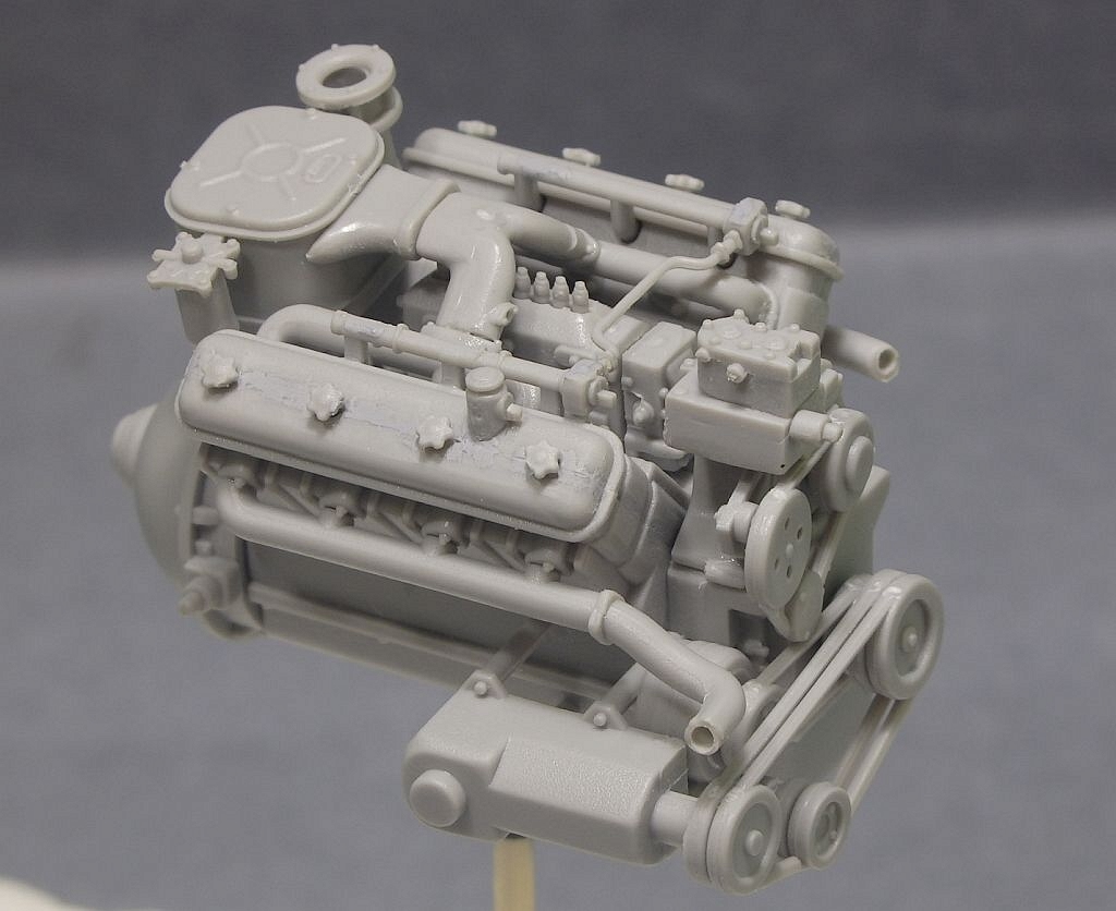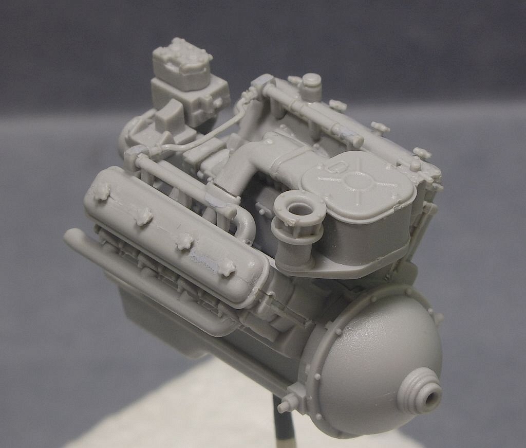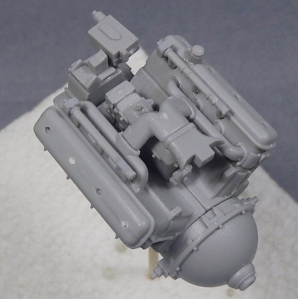 Сегодня уделил немного времени двигателю вот что нарисовалось и то не всё нет генератора и всяких трубочек патрубков и т.д. По пробовал его всунут в моторный отсек идёт тяжело придётся отступить от инструкции.