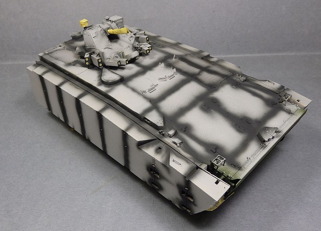Прототипа пока нет, хотелось бы за прототип взять вариант морской пехоты привожу фото, на заднем плане просматривается флаг ВМФ и на первой машине на переднем люке четырёхзначные номера. Может, кто даст более полную картину по этому вопросу и желательно фото мои поиски привели только к этому фото. Стоит и ещё одна проблема, совсем почти нет фото десантного отделения для данного варианта. Как всегда надеюсь на помощь .