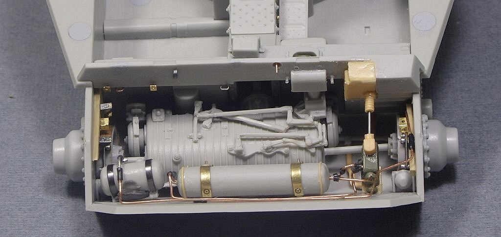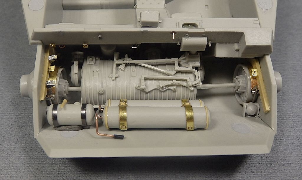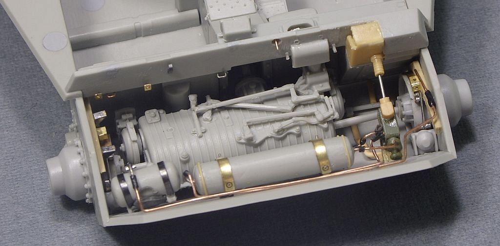 Закончил с отделением трансмиссии добавил трубочки. Как смог изготовил механизм тормозного крана до оригинал далеко. Добавил тяги тормозной системы.