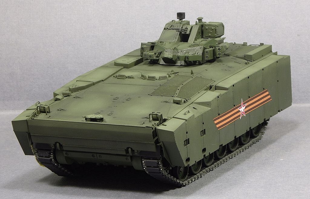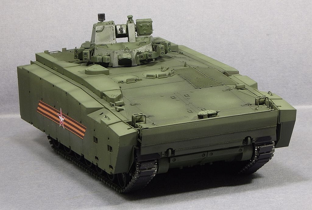 Решил разнообразить свою коллекцию БМП нашим родным и новым объект 693 Курганец-25. Стройка будет не большой. Раньше с Пандой дело не имел, пластик хорошего качества собирается всё легко. Травление самое необходимое (решетки и короба, ограждения для задних габаритов , ряд элементов для башенки). Особое удовлетворение испытал от сборки траков (каждый из трех частей). Гусеничная лента получается рабочая. В инструкции по сборке есть ошибки. Сама модель меня не очень вдохновила всё очень просто, выражусь так широкий кирпич с маленькой башней. Первоначально планировал просто из коробочная сборка. Но потом все-таки решил кое, что добавить думаю, это немного оживит модель.