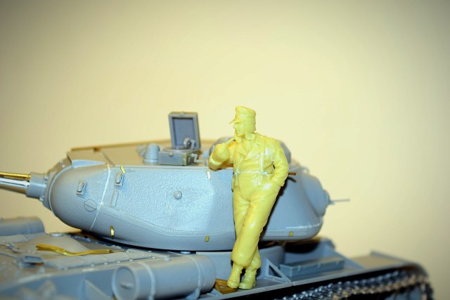 Пока орудие все ещё в пути. На месте стрелка-радиста убрал смотровой прибор, заменив его базой для установки наружнего пулемета с ПНВ. Хочу добавить пулемет на лоб танка,однако пока не накопал подходящего в расходниках. Механику-водителю установил вращающийся ПНВ с прожектором, который расположен рядом. Остальное сделанное - всё по писанию. Пока без инструмента, ибо не совсем понятно - актуален ли он будет на этом агрегате.