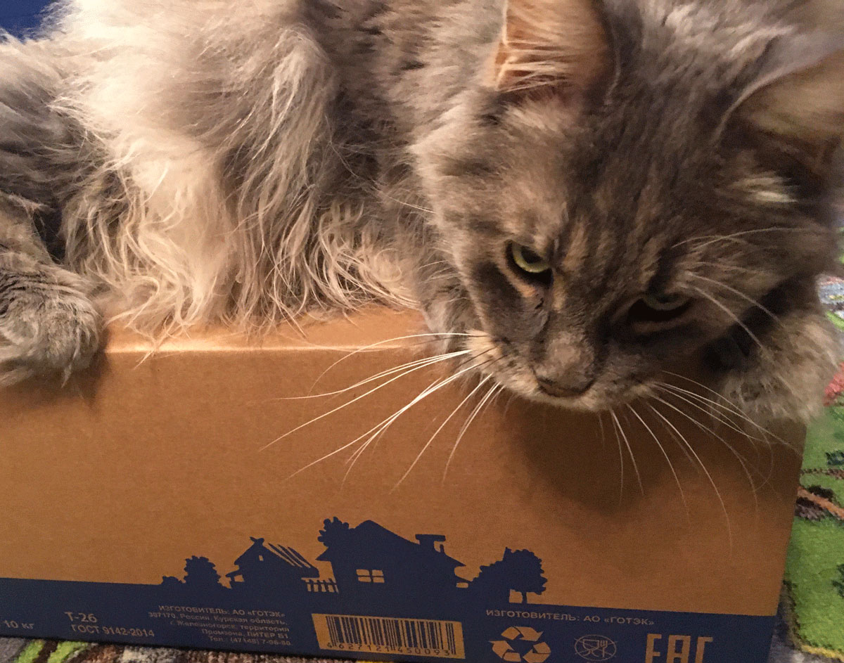 Снегурка отобрала сладкое, кошка заграбастала коробку.