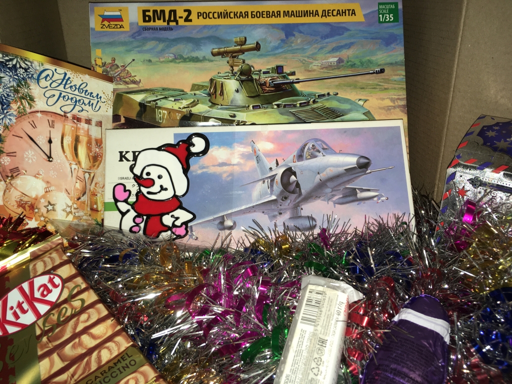 Ну, вот всё и готово! Дедушка Мороз собрал свою часть подарка, снегурка тоже подсуетилась и внесла свою часть волшебства. От себя же добавил мечту любого мальчишки, рожденного в СССР, который с мечтой о небе бежал записываться в авиамодельный кружок. Осталось только снести все это на почту.