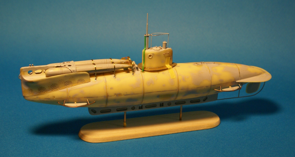 Благодаря неоценимой помощи Александра Олеговича удалось найти еще несколько фотографий этих лодок. Как мне кажется, окраска все-таки довольно светлая и похожа на цвет надводного флота: светло-серый-голубой, а вариант модели с боксарта явно слишком темный. Так что думаю выбрать для базового цвета что-то похожее на краску для надводной части модели катера M.A.S. от Италери, но буду рад выслушать мнение уважаемых каропчан