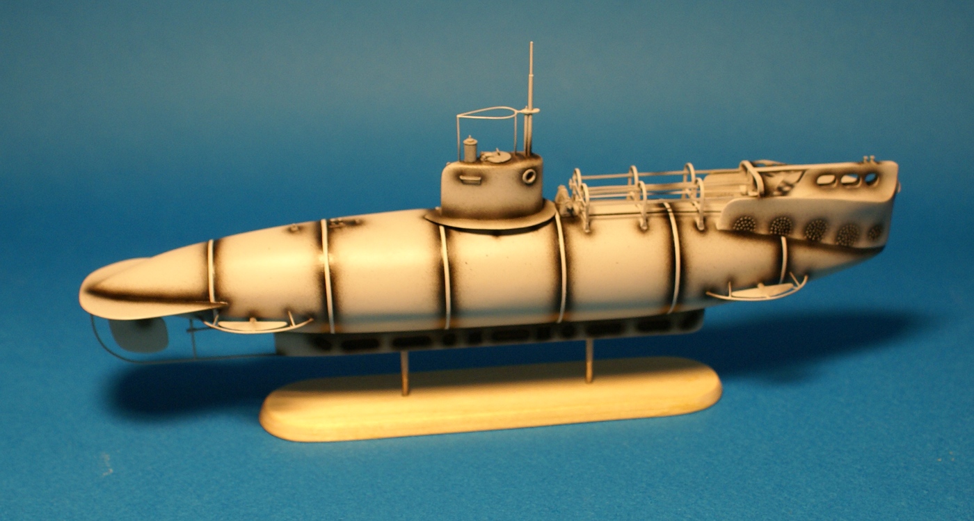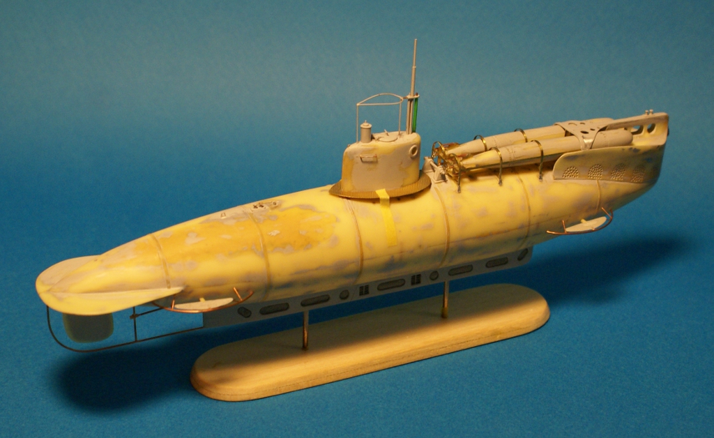 Грунт, очередная шлифовка, затем снова грунт и наконец-то сделан прешейдинг. Основной цвет думаю мешать с боковика лодки на боксарте - шаровый с голубоватым оттенком. Никакой внятной информации о цветах подводного флота Италии я так и не нашел