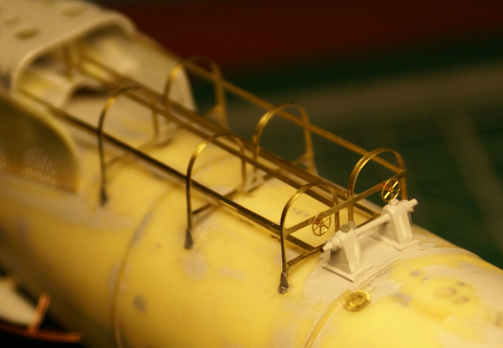 Со сборкой финиш - остались мелкие детали взрывателей и винтов торпед, ну и стойки под настилом у рубки, но их буду ставить на место уже окрашенными.