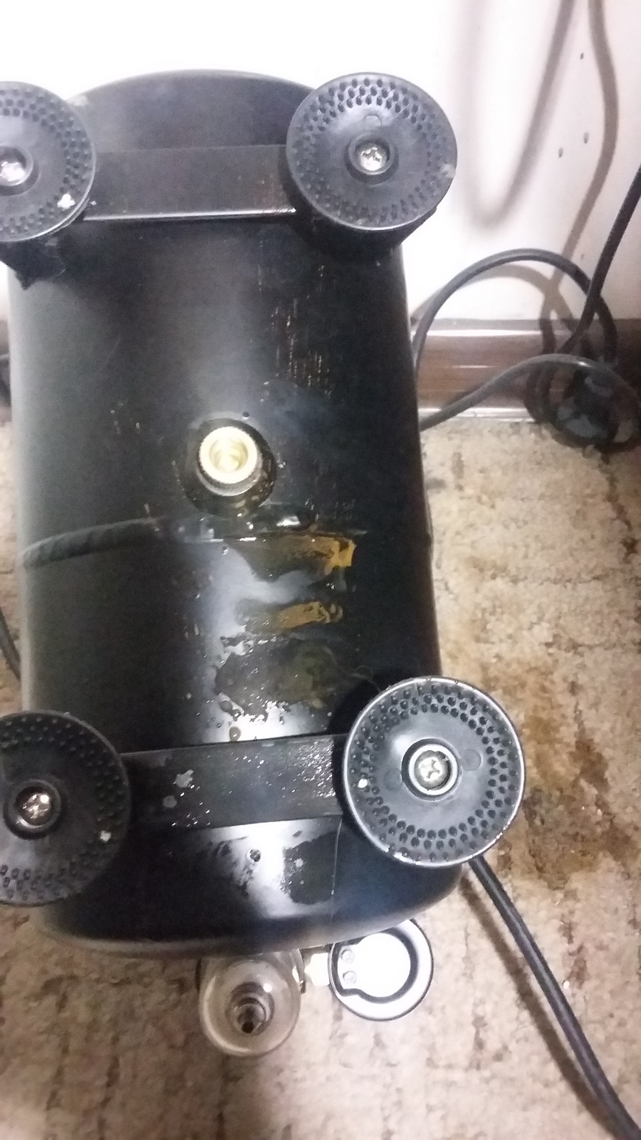 Бац ПШШШШШШШ...... с громким пшшшш вышел весь воздух с ресивера, образовав на полу мокрое пятно со следами ржавчины. Воздух вышел через образовавшуюся дырочку на нижней части ресивера