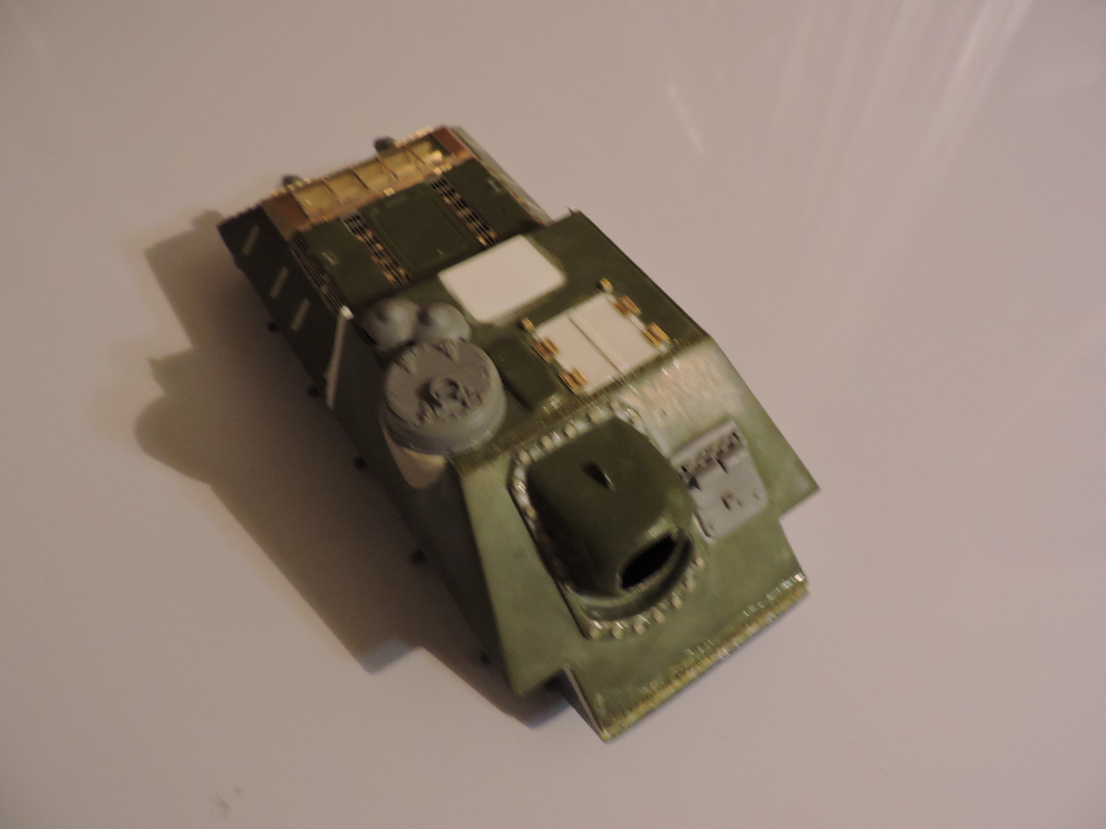 17) Приклеил смоляной люк мехвода в закрытом положении, взамен родного, с открытыми "ресничками" бронировки перископов (Набор внешних деталей от КомплектЗип, магазин "Восточный Фронт"