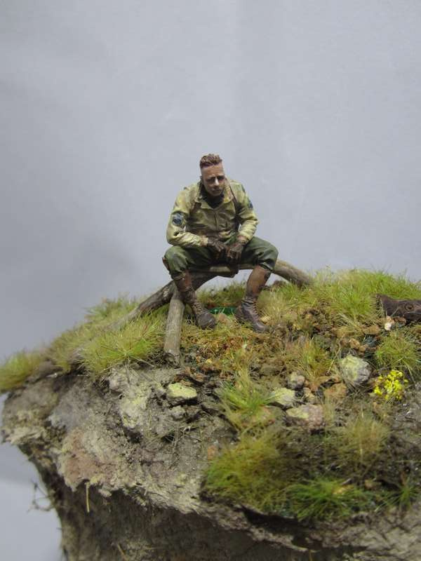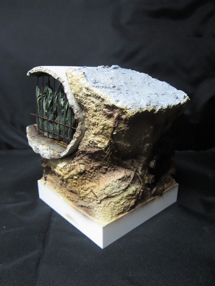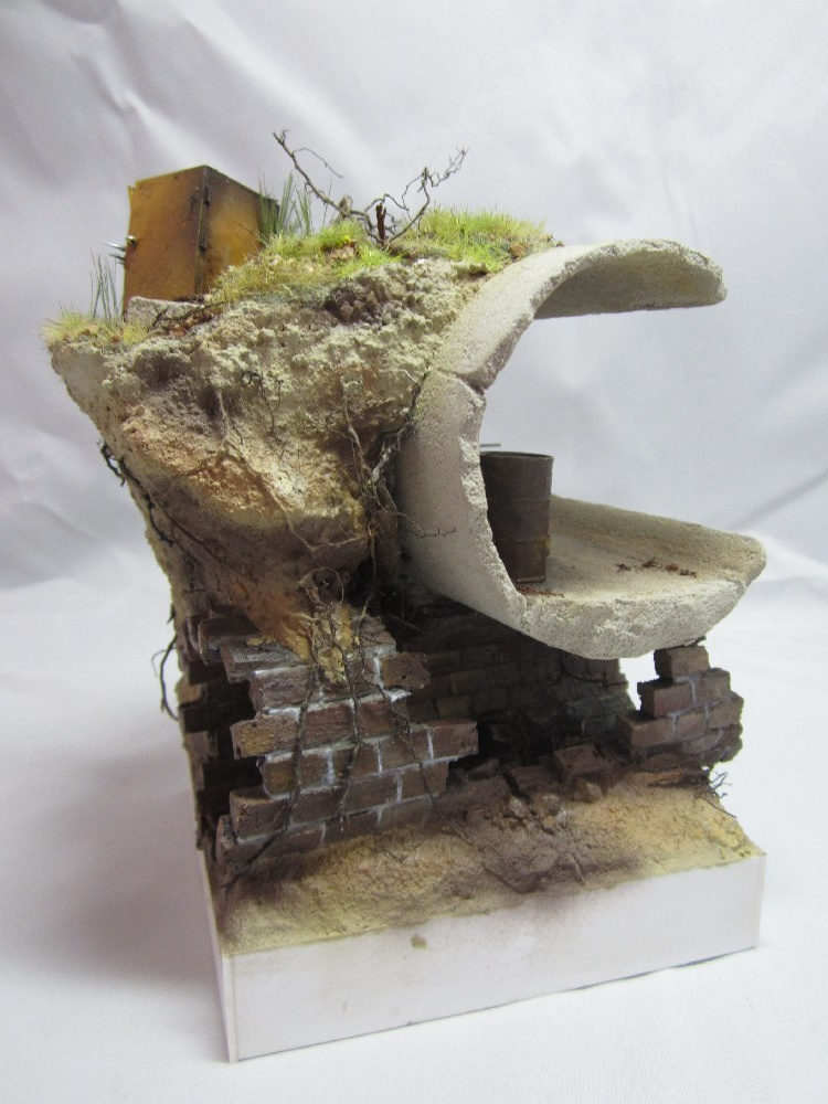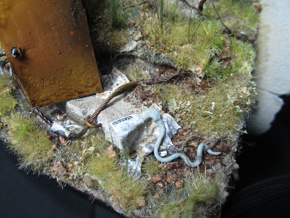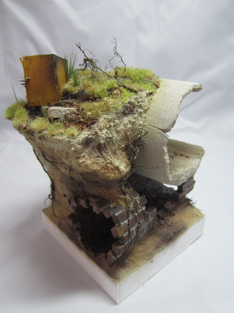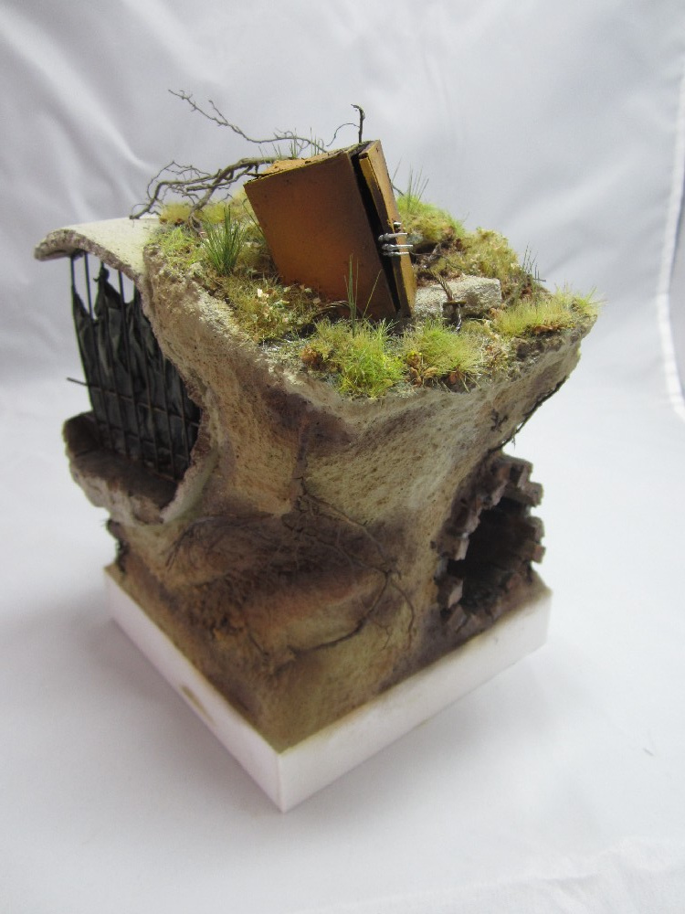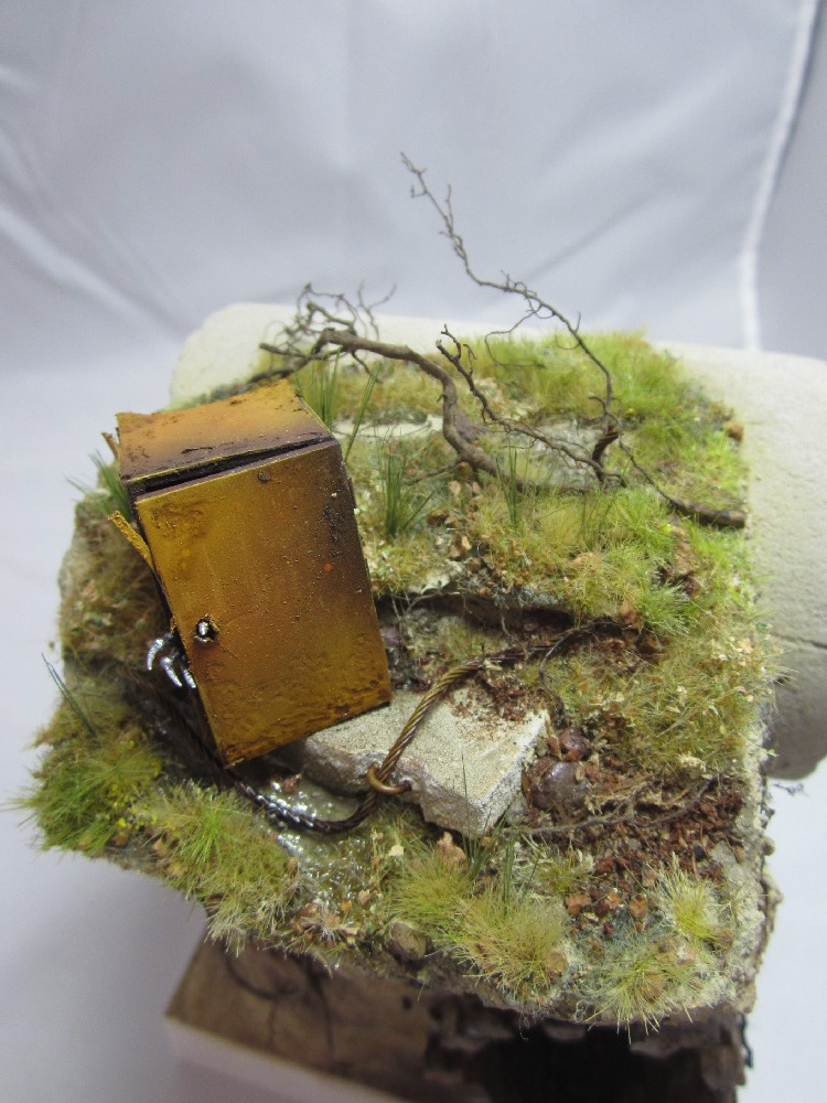 Земля - Гипс, сверху паста АК-сухая земля. Травяной мат, пучки травы + разные мелочи.