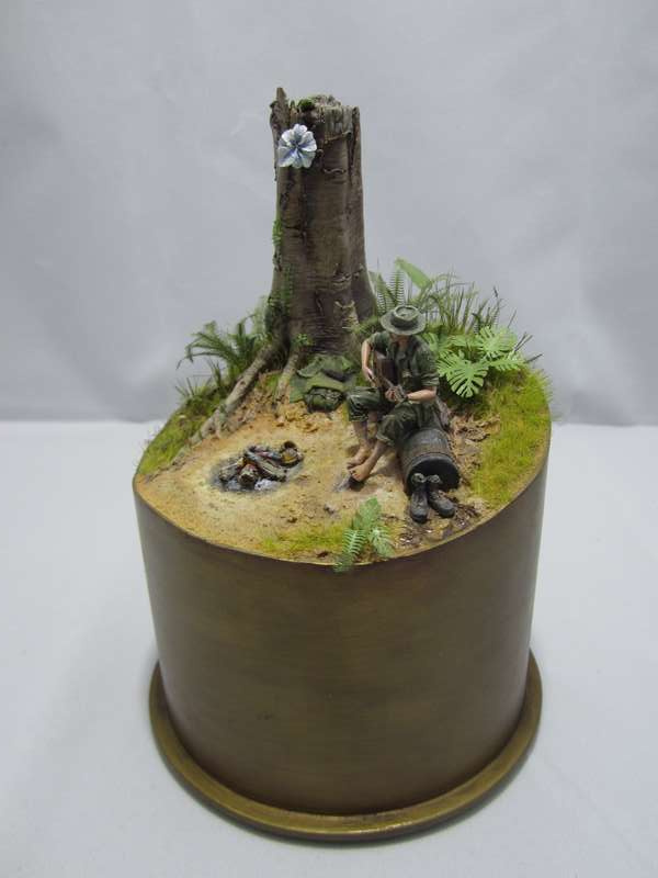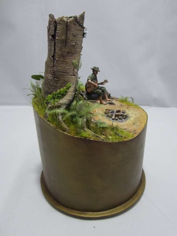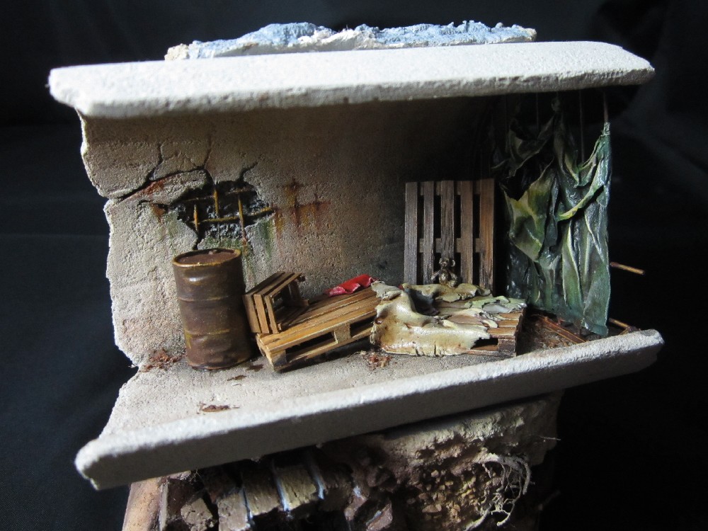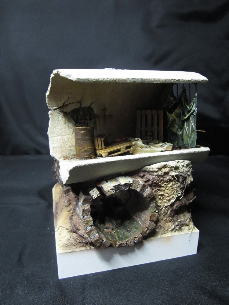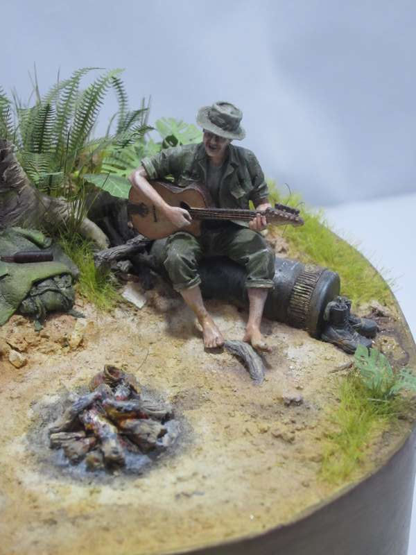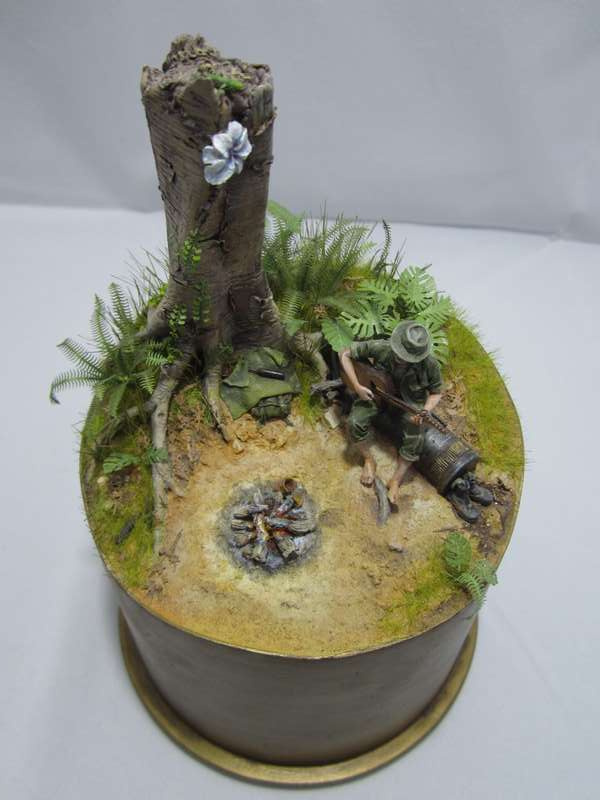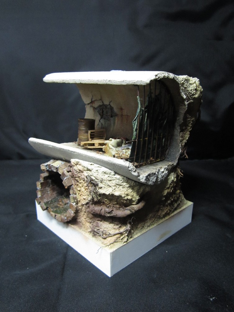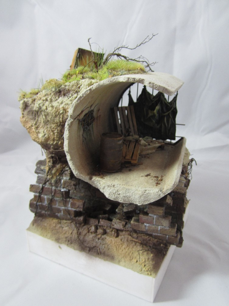 Земля - Гипс, сверху паста АК-сухая земля. Травяной мат, пучки травы + разные мелочи.