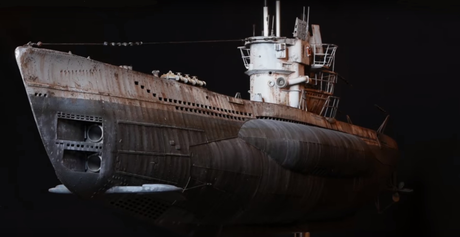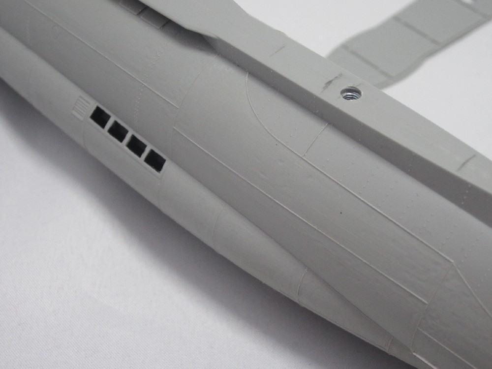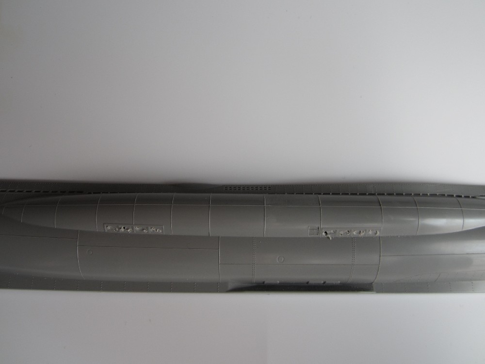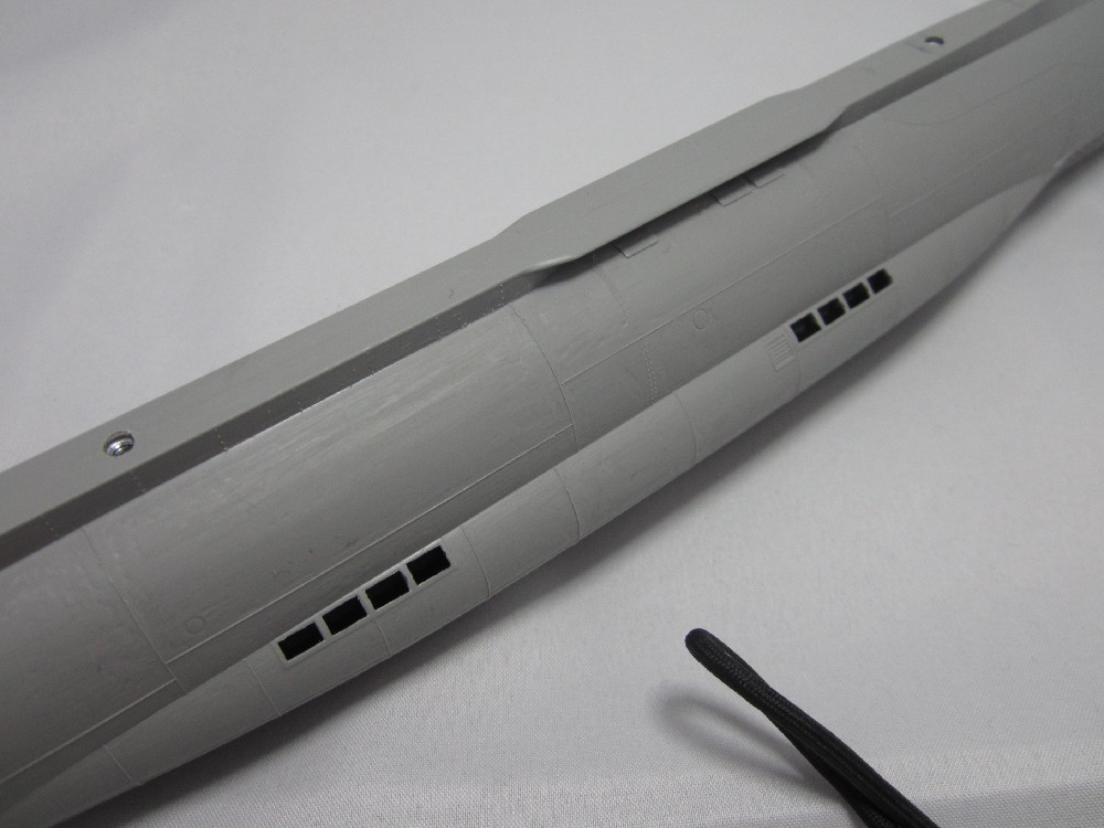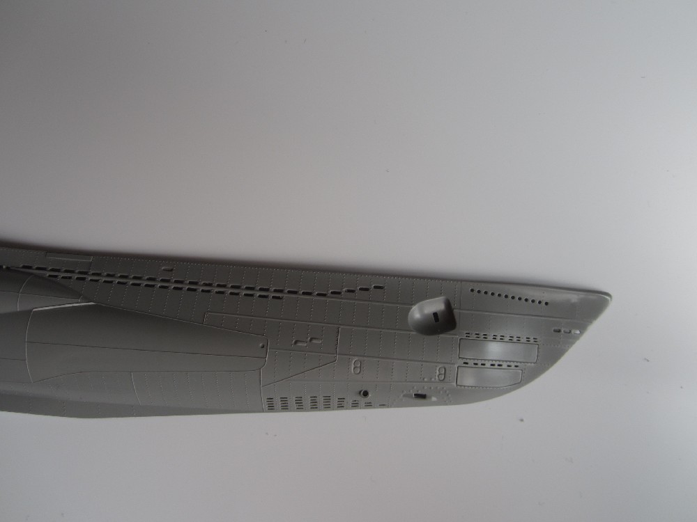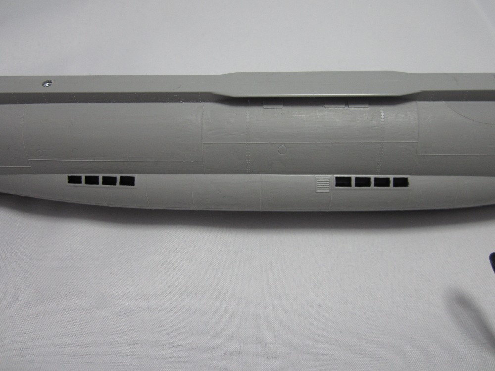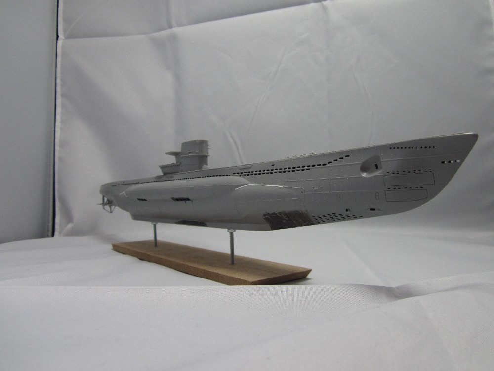 White for hull/conning tower: 5:1 mix Tamiya flat white xf-2, dk sea grey xf-54.