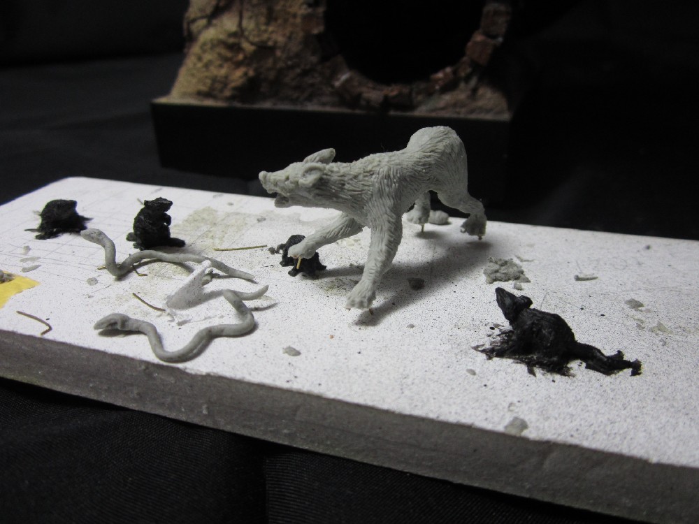 На данный момент обнаружил у себя в заначке целые 2 не использованные ранее фигуры и понеслась. В работе первая в идеале сделать конструкцию с объединенными мелочами, названием "Страхи людские". Впихнуть на 11см некоторое количество людских страхов и фобий...глубоко наверное, но так интересней! С материалом решил поэкспериментировать и базу делать с участием кусков упаковки от яиц с клеем и гипсом, проще говоря папьемаше