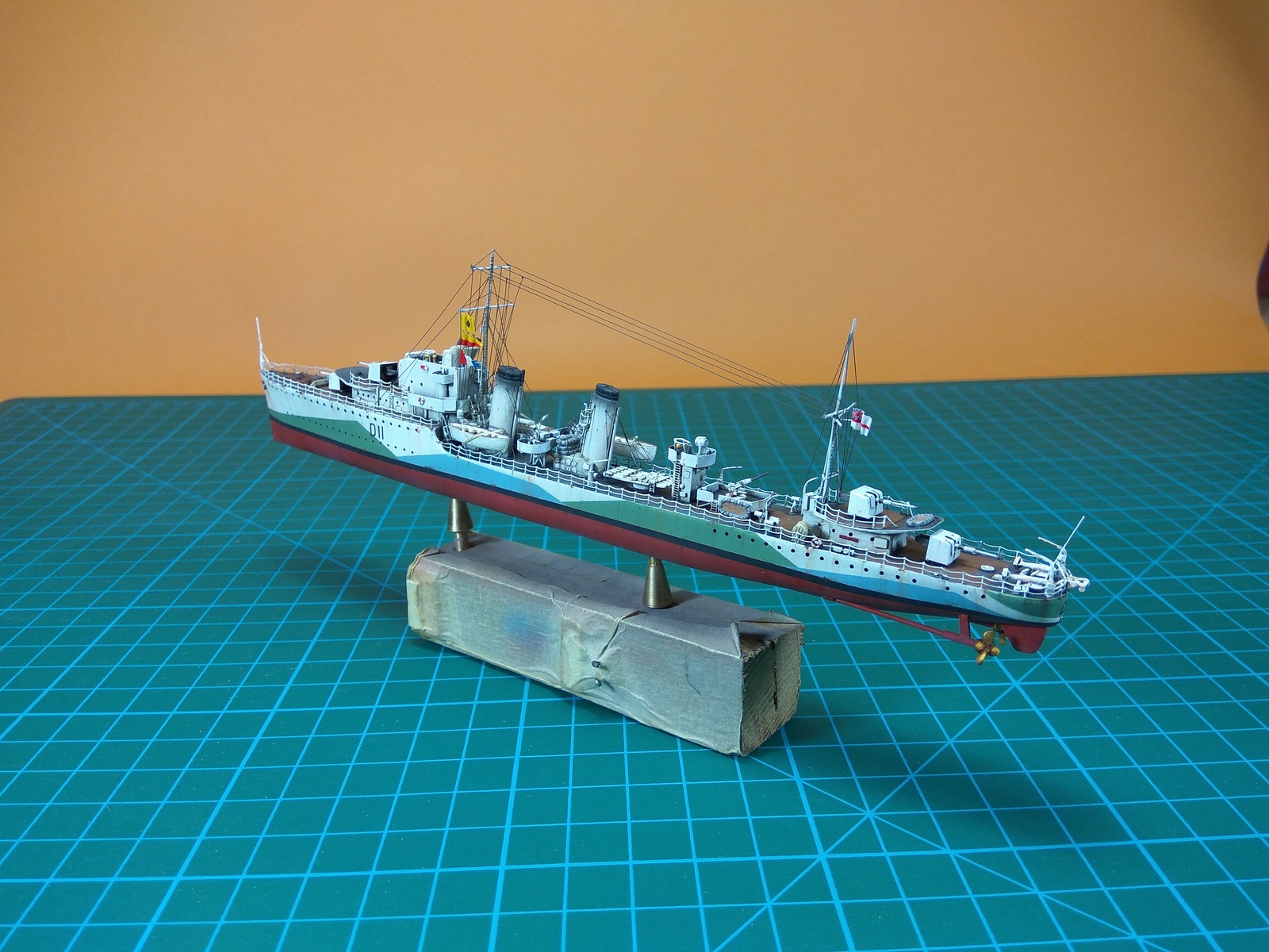 Камуфляж я выбрал ориентируясь на фото прототипа выбранного промежутка времени - 1942 год. Схема "Western Approaches" выделяется своей необычностью - мне не хотелось красить корабль в одноцветный серый, да и модификация корабля именно с учетом переделок 1942. Скажу сразу, есть у меня ляпы по матчасти в плане хронологии модернизации.