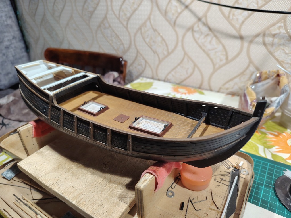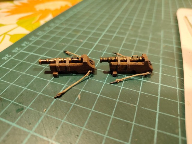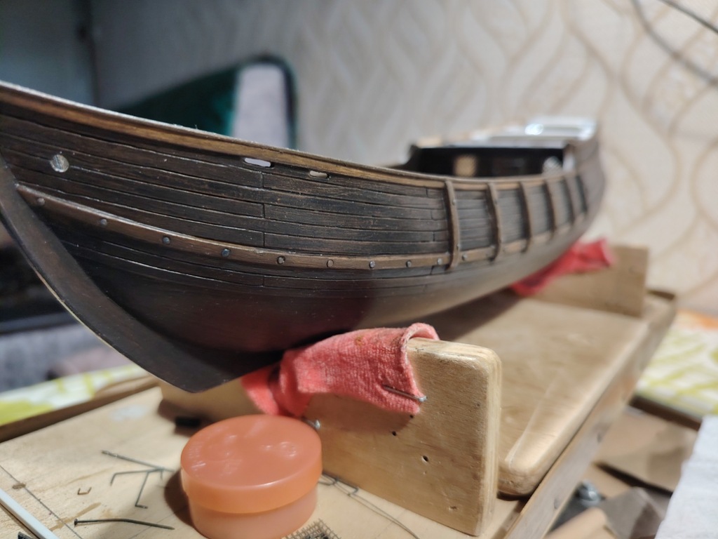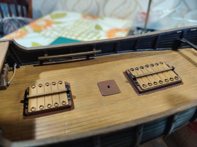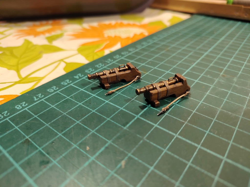 Всем привет! Потихоньку продолжаю пилить. На сегодня установил пушки на место. Обвязал шлюпку. Вложил туда вёсла с багром. Сделал шаблоны парусов. И успел сделать заготовки этих парусов. Крашенная ткань у меня оставалась со стройки Маши.
