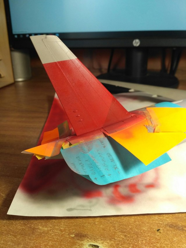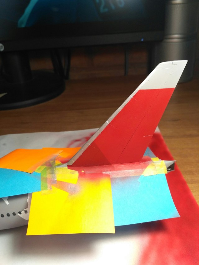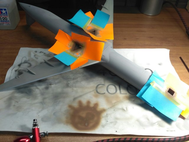 Так что дальше будем задувать лаком остатки декали, а потом наносить маски и восстанавливать белым.