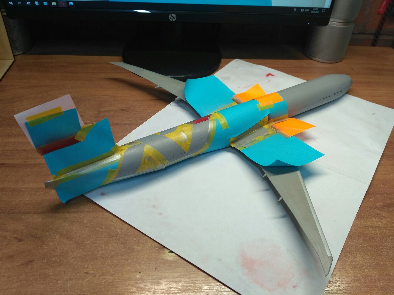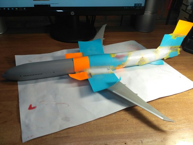 - собран фюзеляж: внутри грузик, кабина пилотов задута черным;