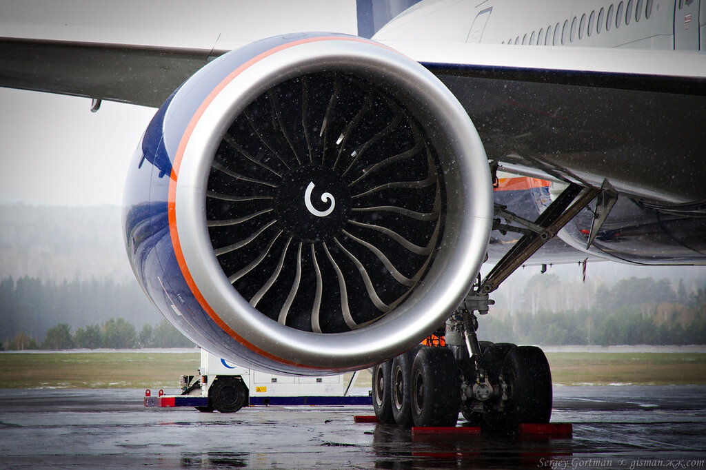 Для сравнения: двигатели B-777 рядом со строящимся B-737-200.