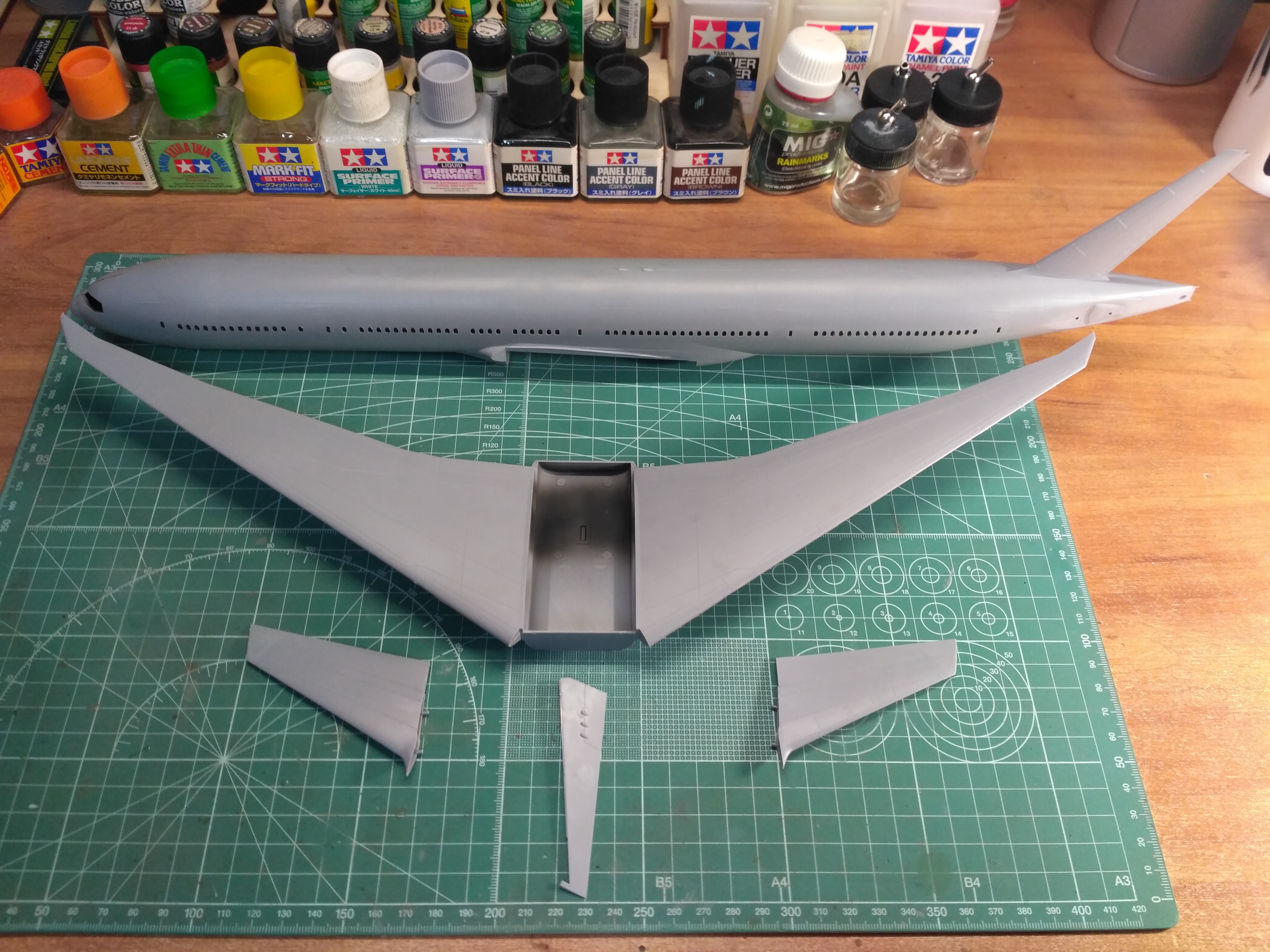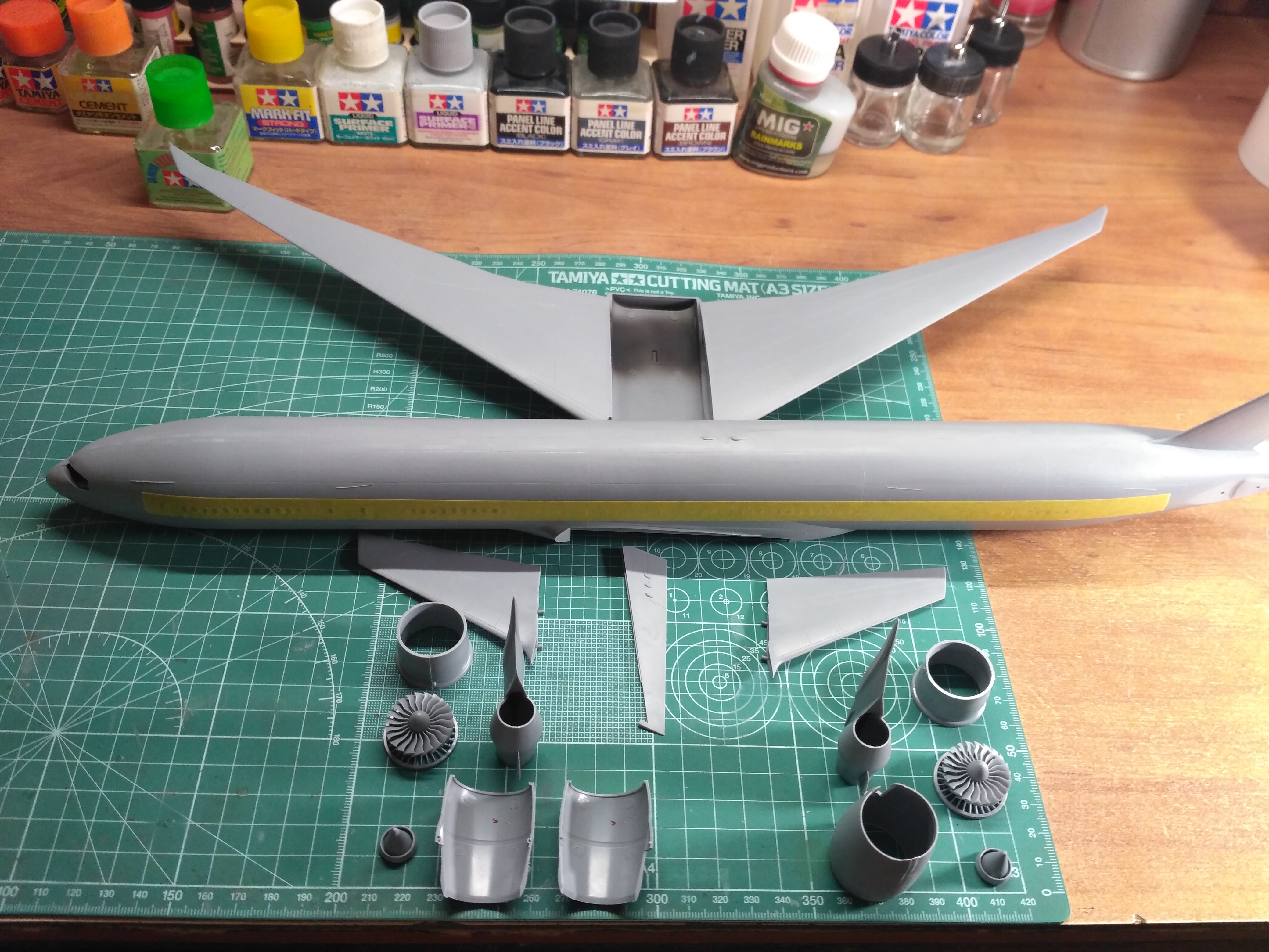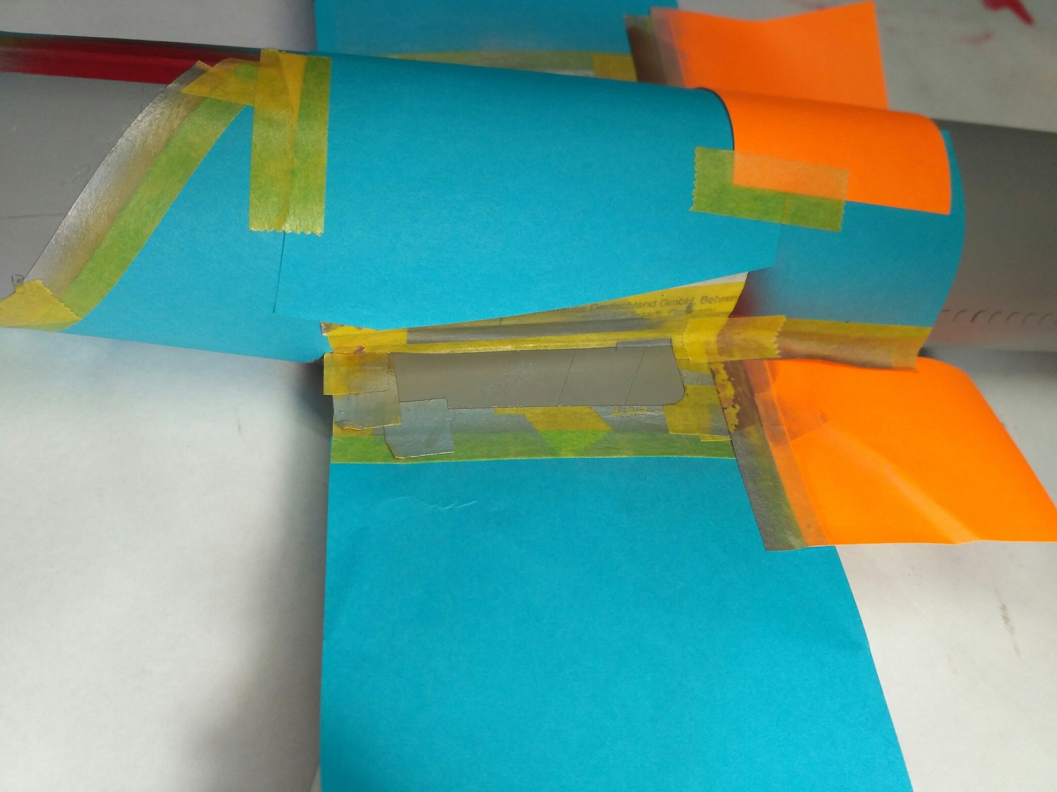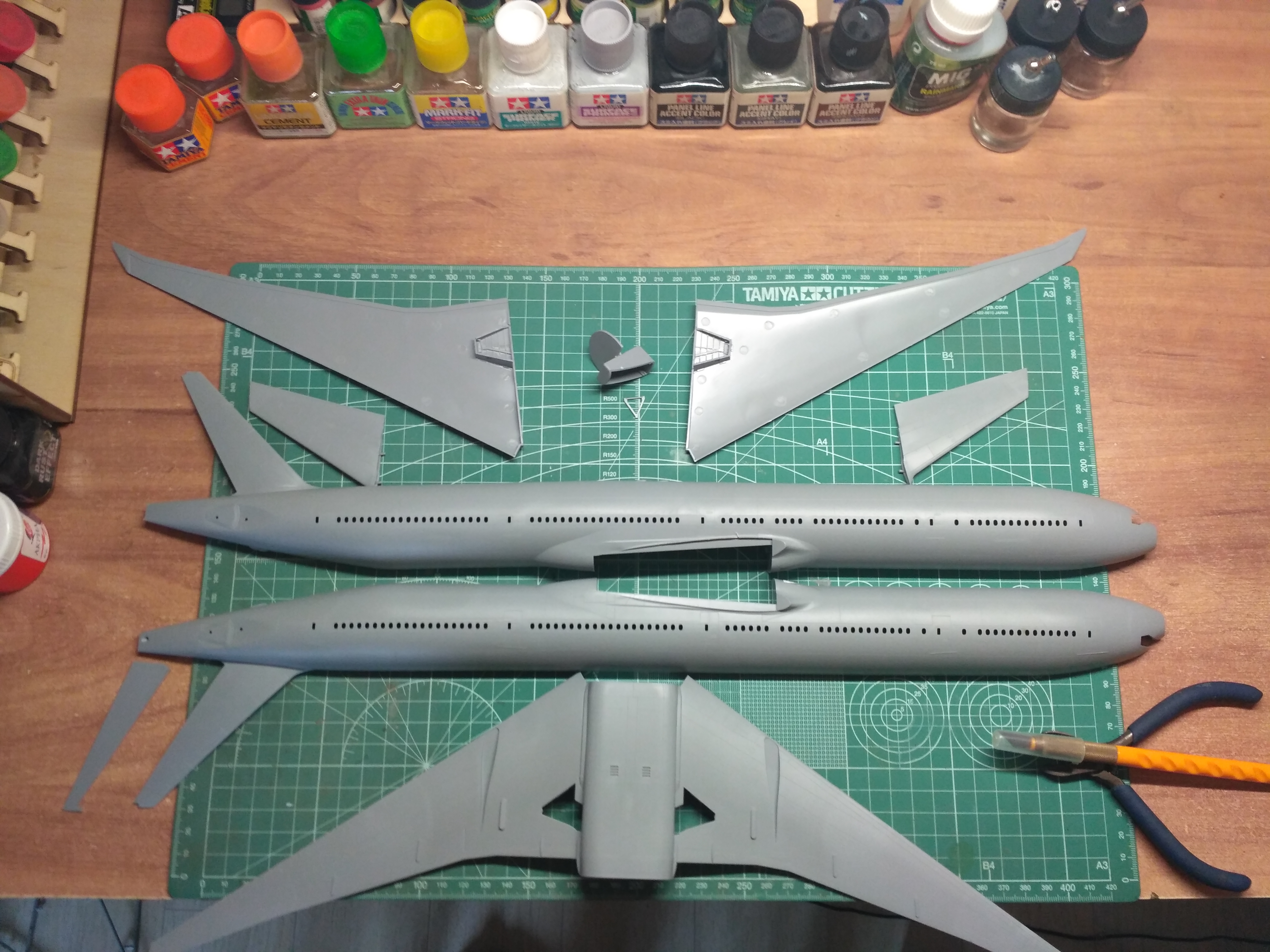 Сегодня фюзеляж очередной раз помыт с мылом, швы задуты грунтовкой, дабы выявить неровности. Сверху все хорошо, снизу нет.