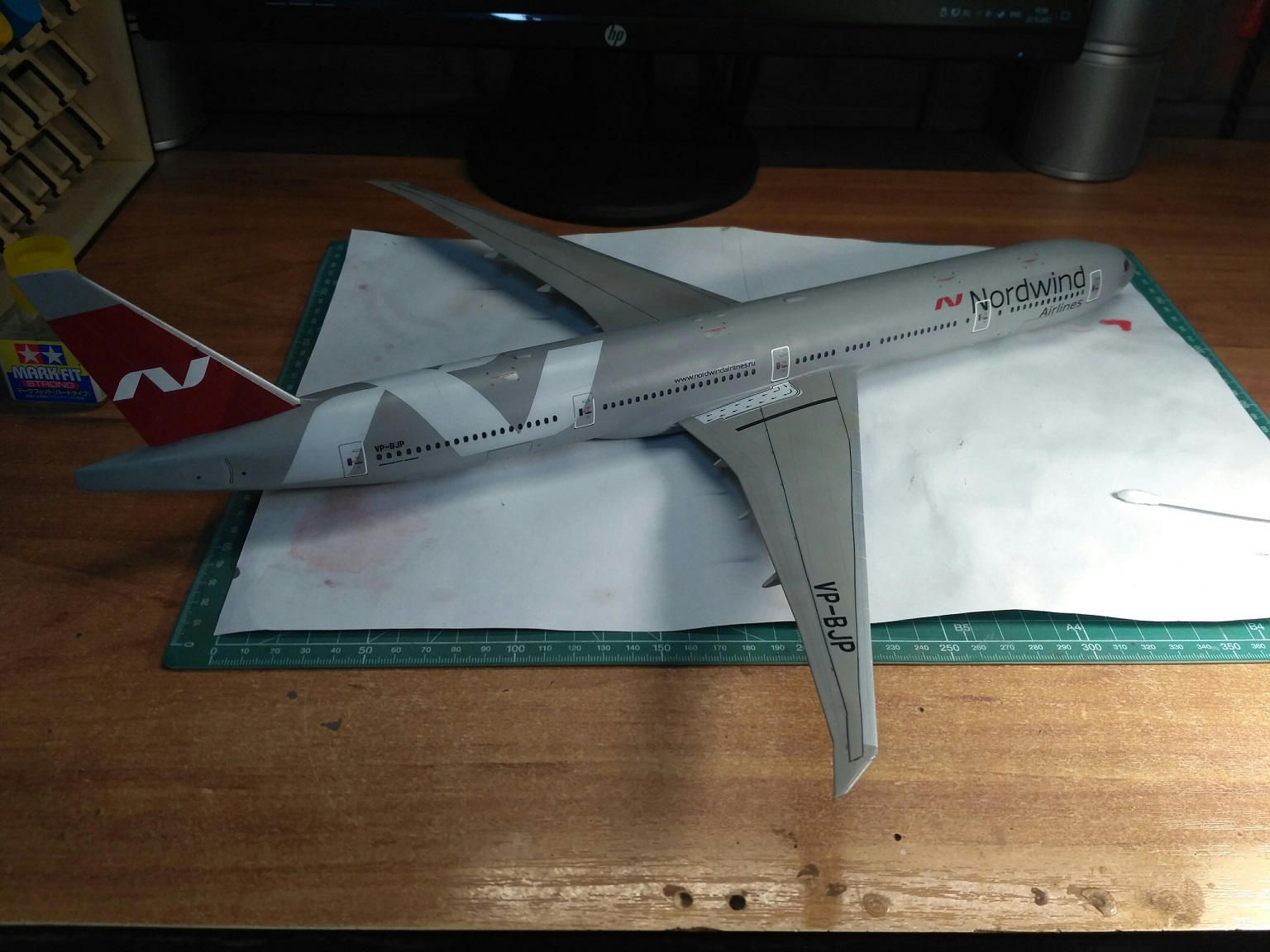 B-777-300 ER от Звезды, травление "Микродизайн", декаль Nordwind от Ascensio, маски KV Models, табличка.