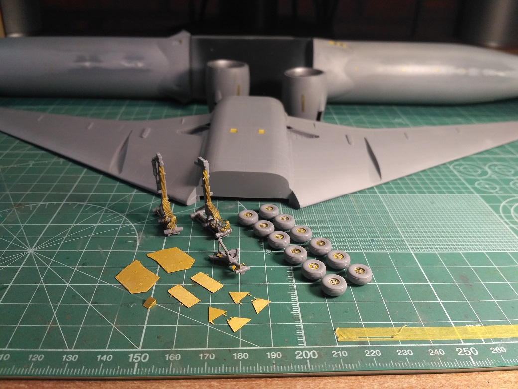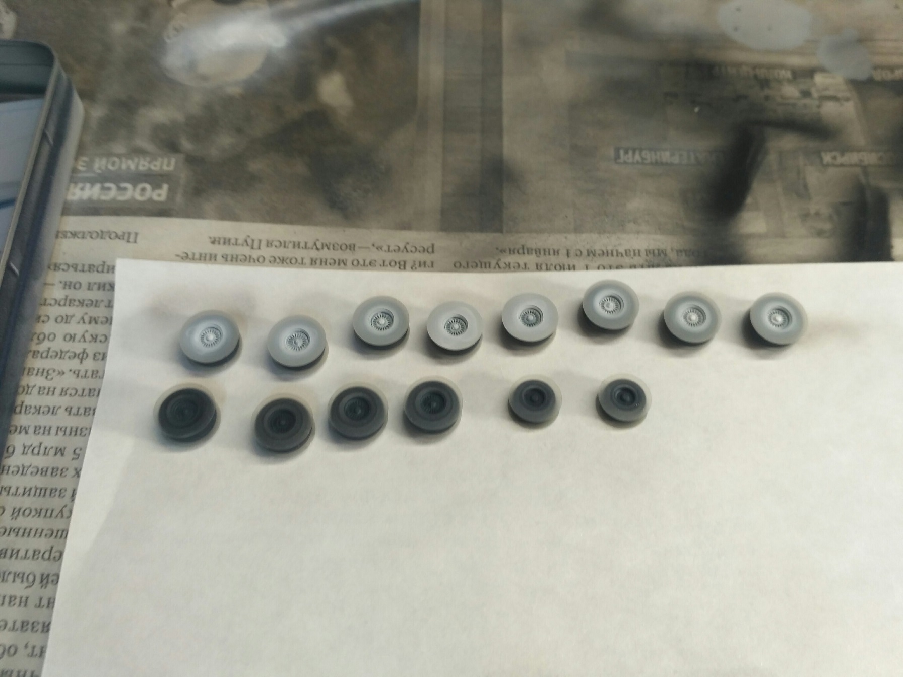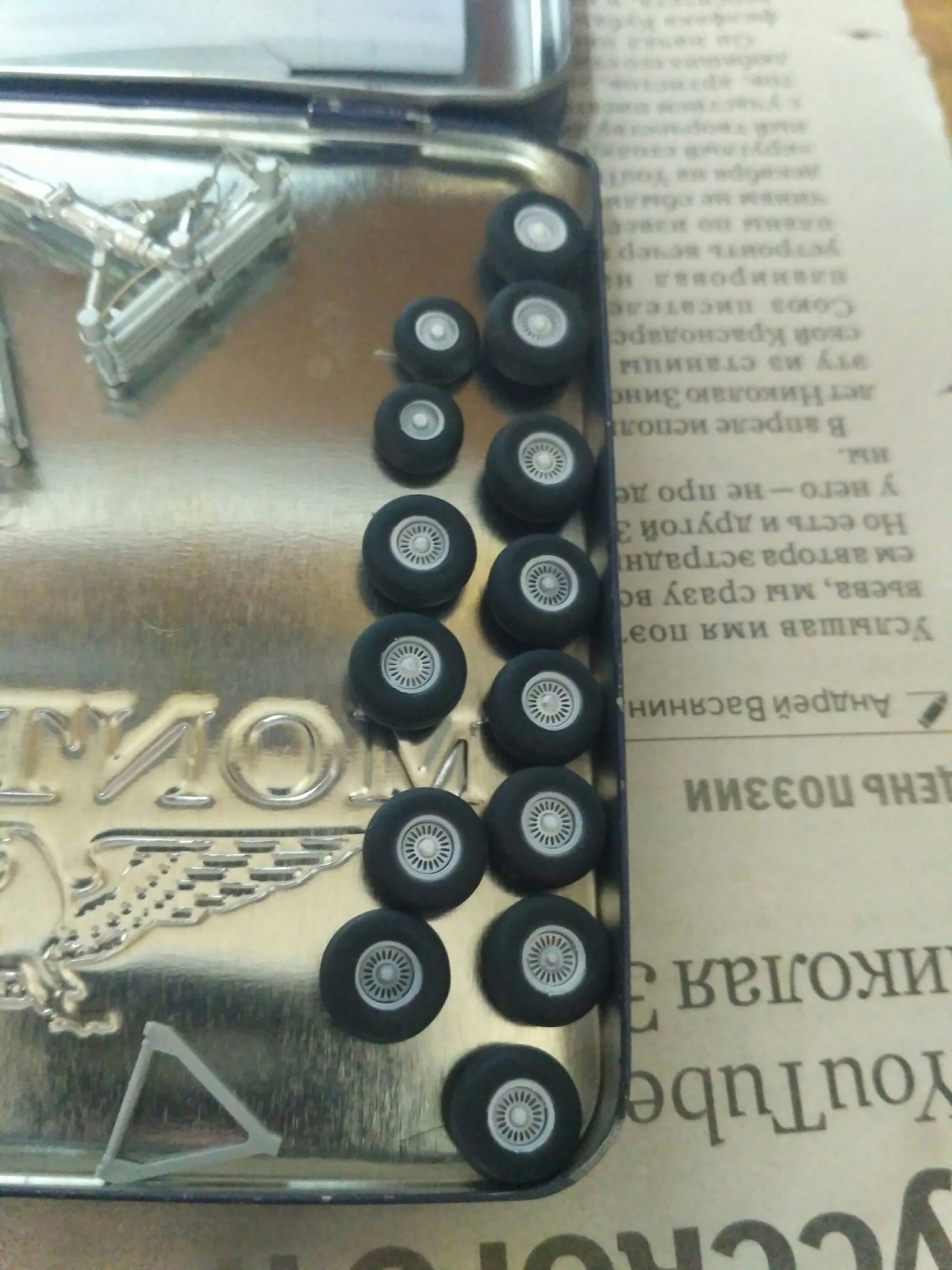 Стройка потихоньку движется. Начата покраска стоек шасси, покрашены пневматики.
