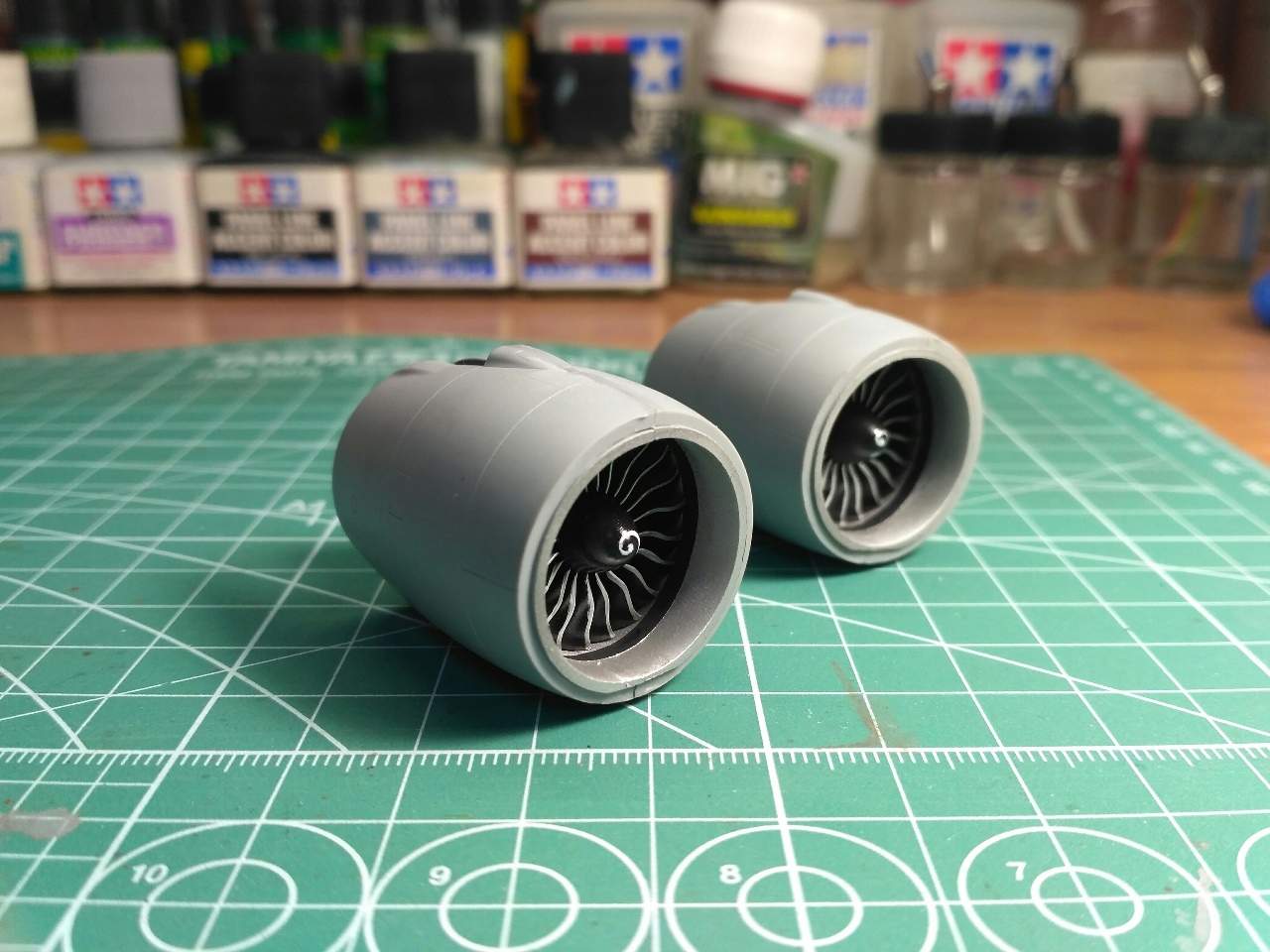 Наверно не стоило лопатки красить в радикально чёрный цвет., в мотогондолах и так темно.