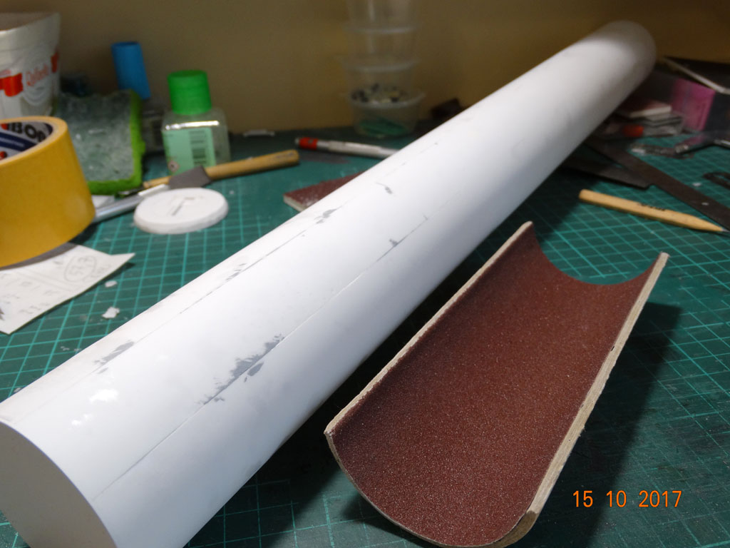Далее зашкурю, доведу до нужного диаметра, покрою грунтом (при этом вылезут все дефекты), зашпаклюю и окончательно все зашкурю. И можно будет делать контейнер.