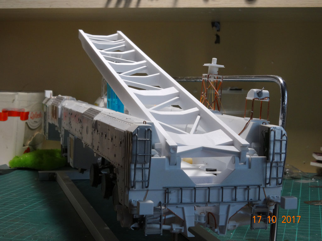 Мне кажется, не стоит на модели поднимать стрелу. Там на реальном агрегате целая куча всяких механизмов, трубопроводов и кабелей.