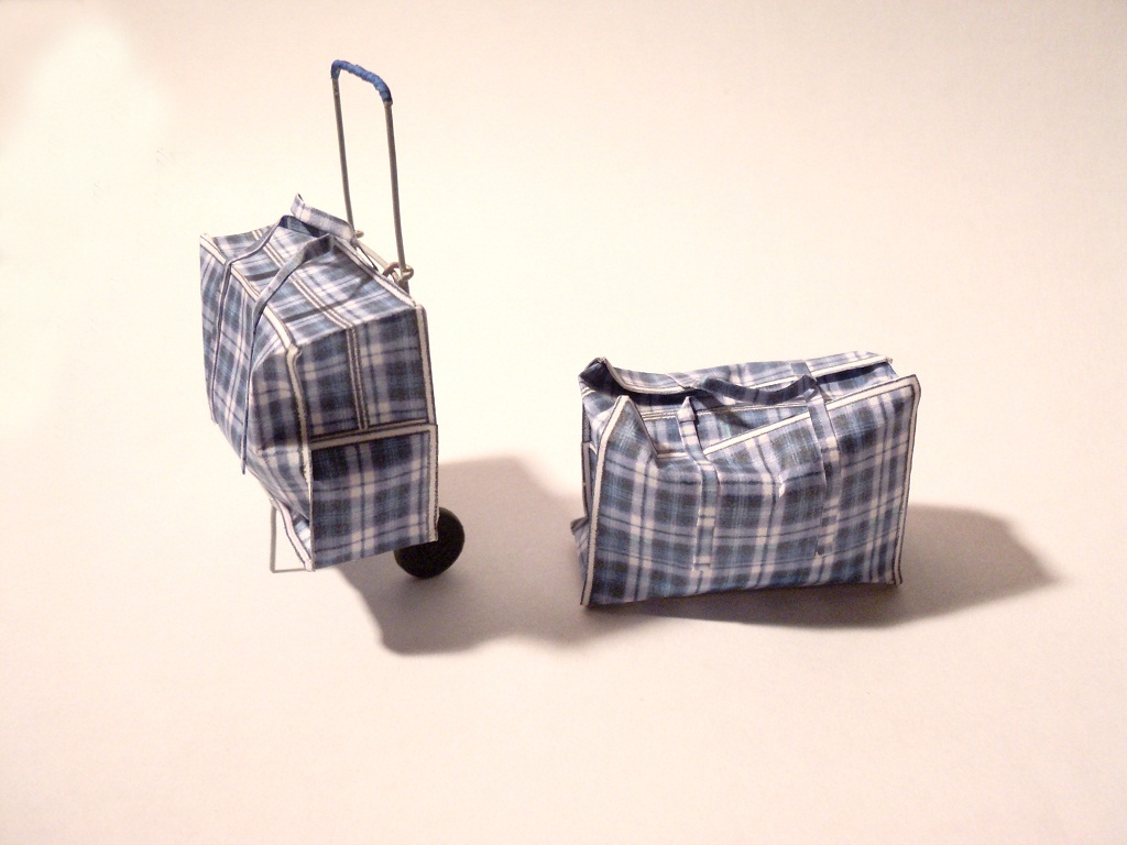 В предновогоднюю пору зарезал давно лежавшие выкройки мусорного бака. Как обычно, леплю к нему продолжение- подставку и т.д.... Масштаб 1:25.Бак красил и грязнил акрилом.