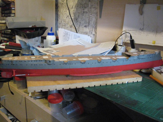 Сама модель была начата несколько лет назад - собран каркас -сделан болван и с косяками наклеена часть подводной обшивки , после чего заброшена до вдохновения .