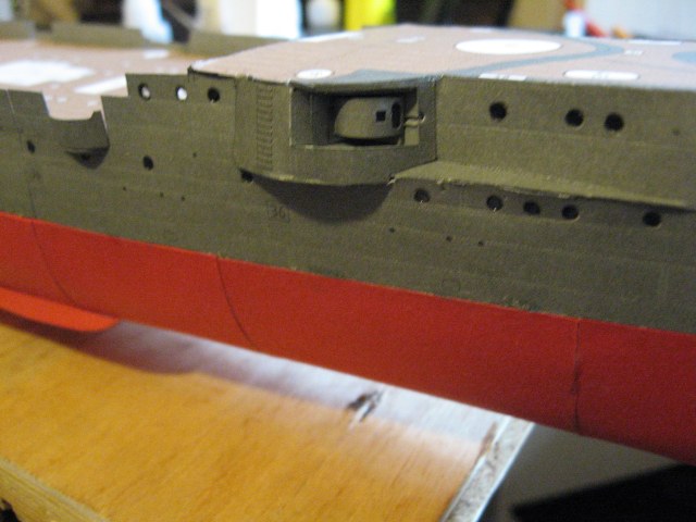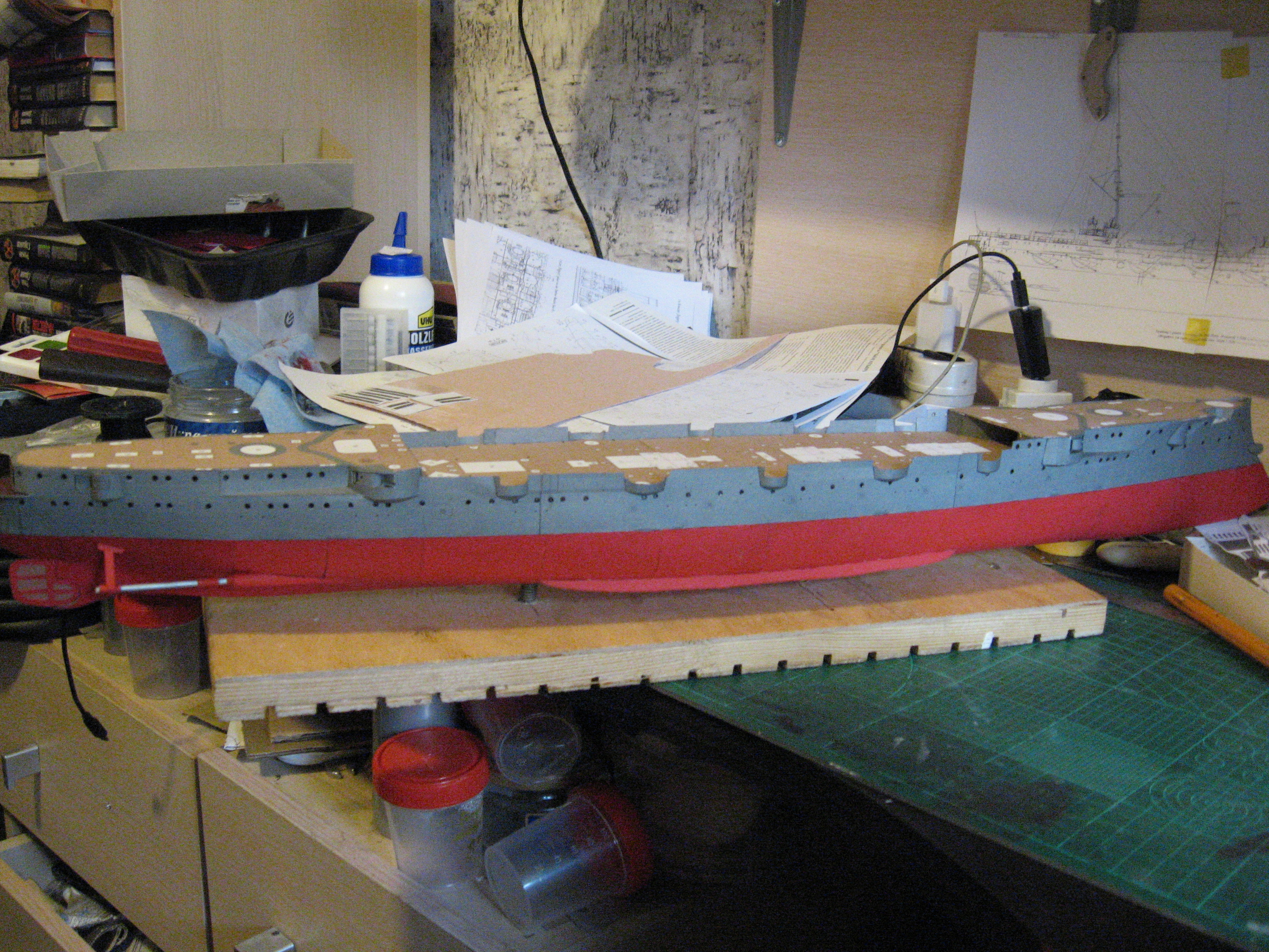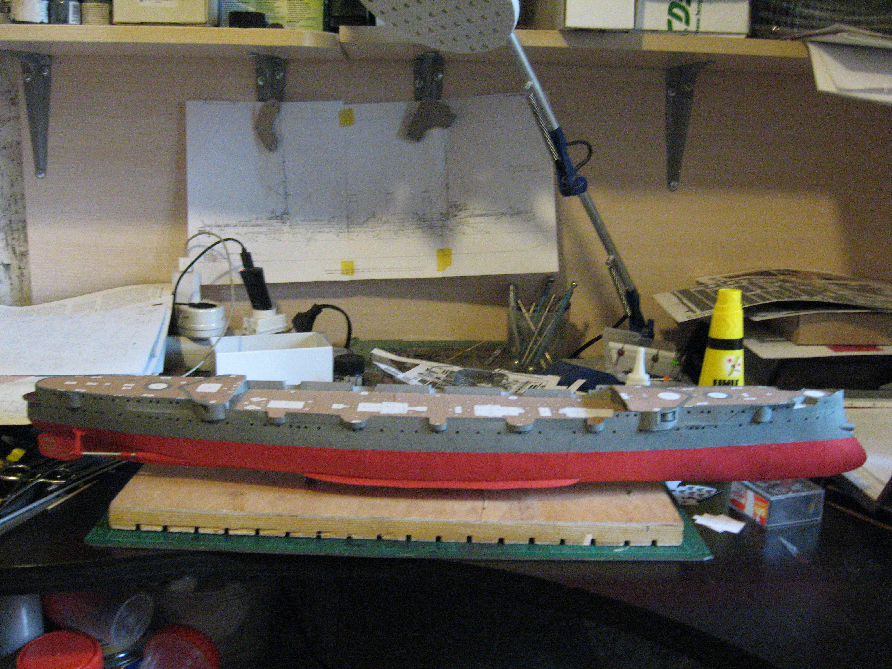 Начал с того что доделал корпус - максимально попытался скрыть огрехи старой сборки для чего пришлось в некоторых местах белого корпуса подшкуривать бумагу. После таких издевательств над ней пришлось все щедро покрывать лаком чтобы не махрилась и тем более не пачкалась. ЕСть к тому же мысль в конце оживить подтеками и разводами борт .![]()