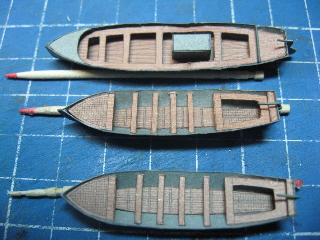 Заодно попробовал собрать шлюпку - давненько не собирал их по классике то вариант Кустова( там корпус из офисной бумаги ) то с горизонтальным разрезом .
