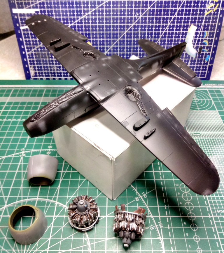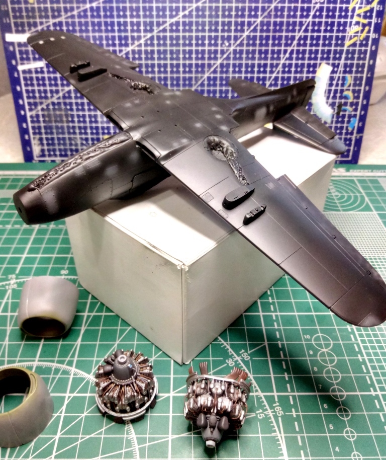 Капот на AU-1 получится сделать из капота F4U-5 зашив отверстия воздухозаборников. По форме он такой же щекастый. Но на фюзеляже, надо будет перенести вниз выштамповки под выхлопные трубы.