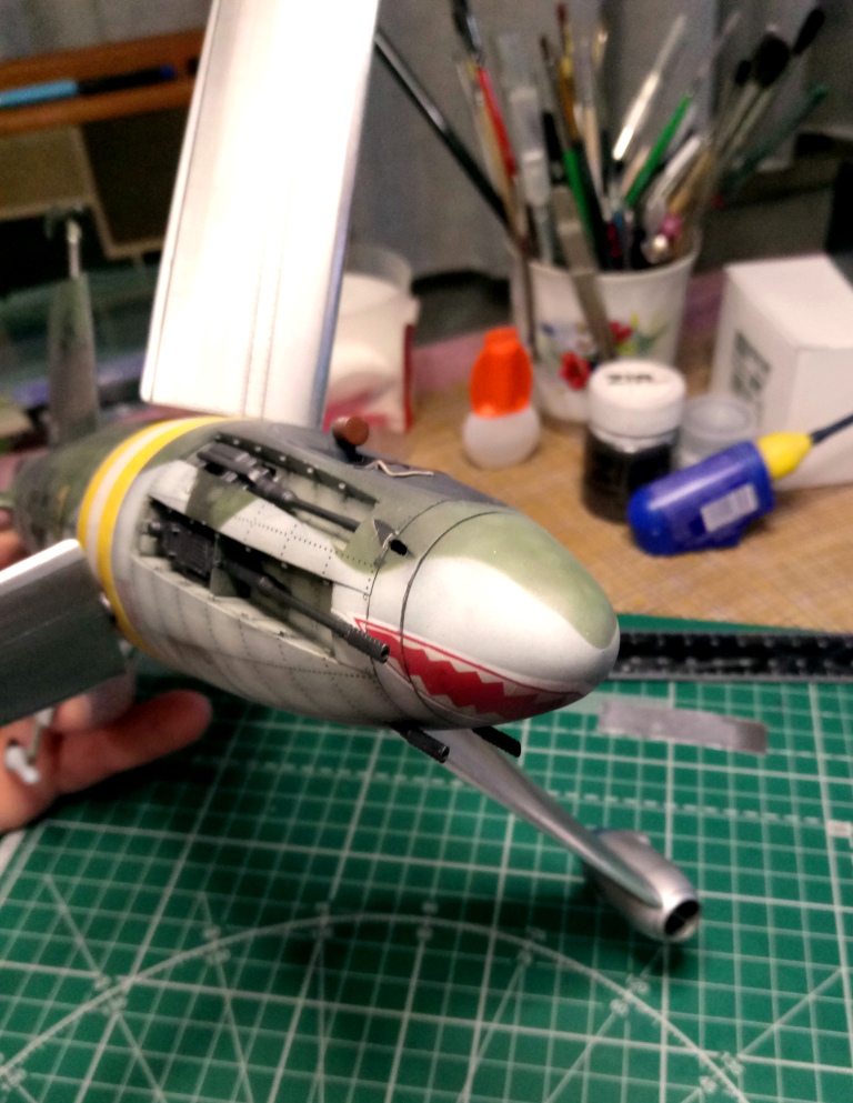 Сделал выхлопы, и пр. Осталось вклеить мелочи (патрубки, стволы пулеметов, баки). Патрубки из набора - в мусорку. Взял смоляные, от Эдуарда, для Р-400. Чуть подточить и встают как "родные".