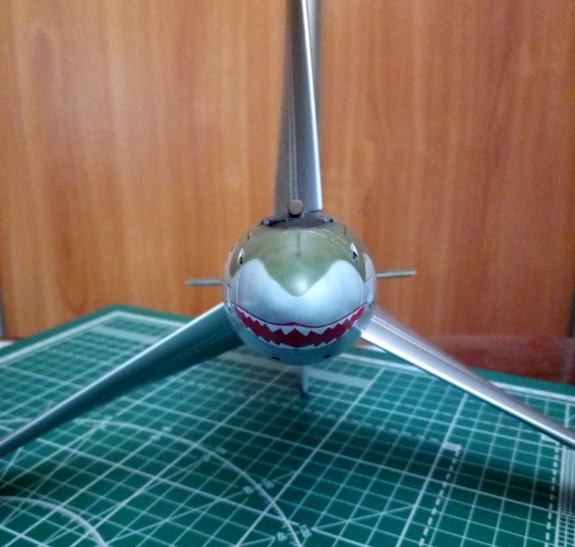 После суток сушки базы, нанес на модель антибликовую полосу на носу и дорожки на крыле для пилотов и техперсонала.
