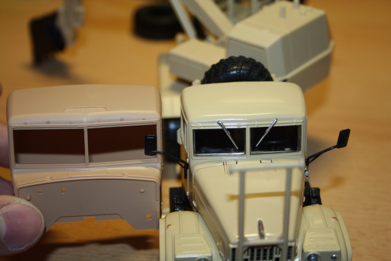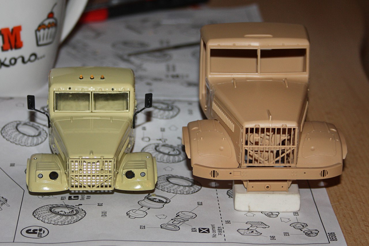 Разница в размерах с кабиной 43 масштаба, кабина от Краз 258 из журнальной серии Автолегенды Грузовики.