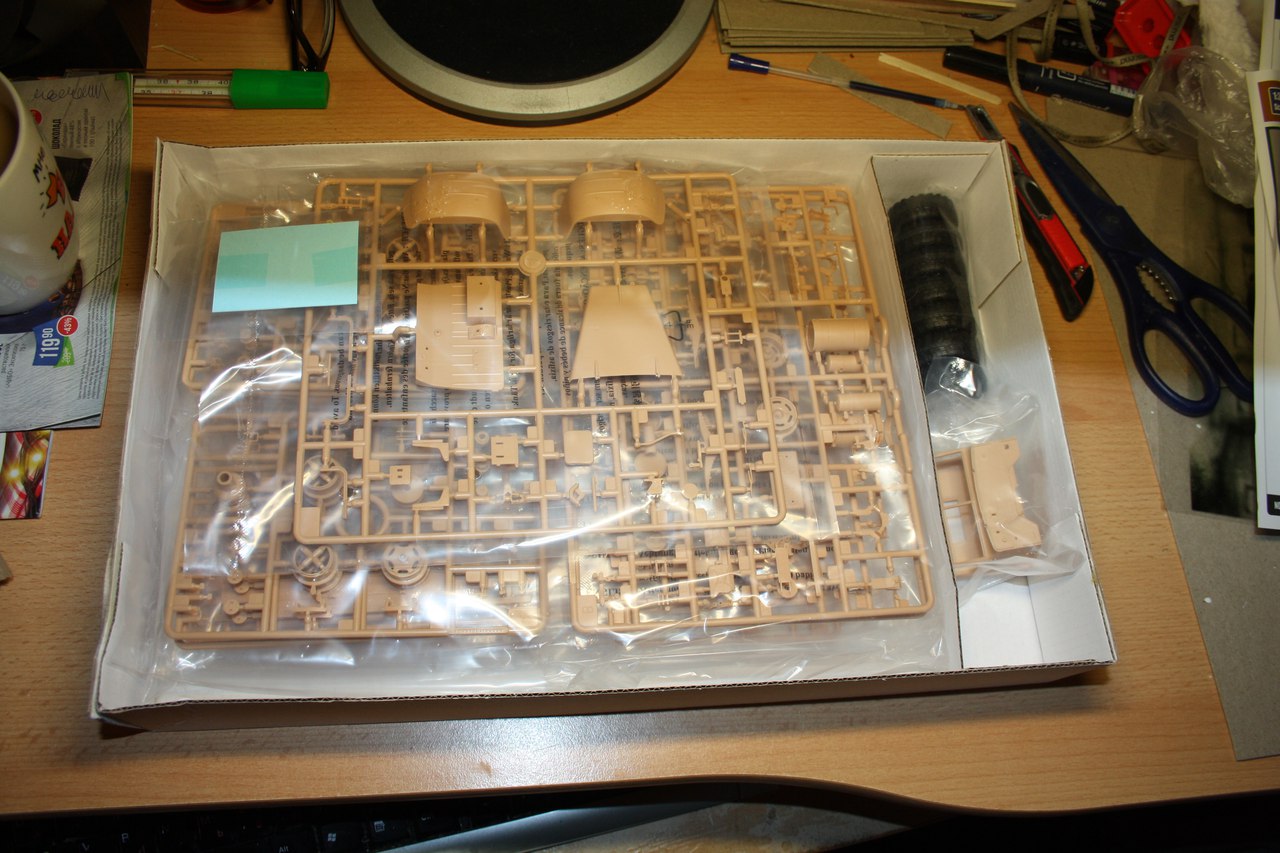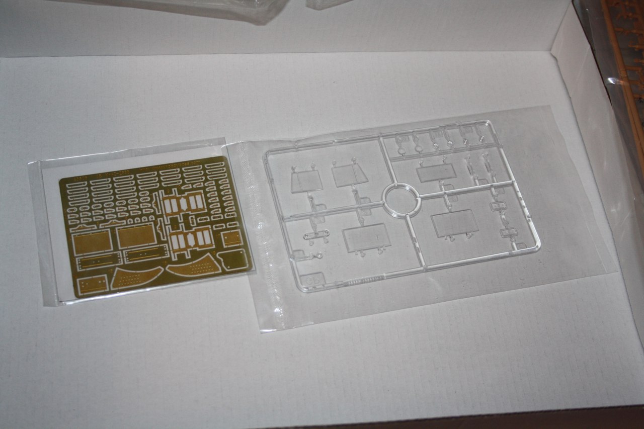 Сама коробка с моделью очень легкая, в комплекте идет Инструкция по сборке, фототравление, стекла, декали, сам пластиковый набор и резиновые покрышки в количестве 7 штук.