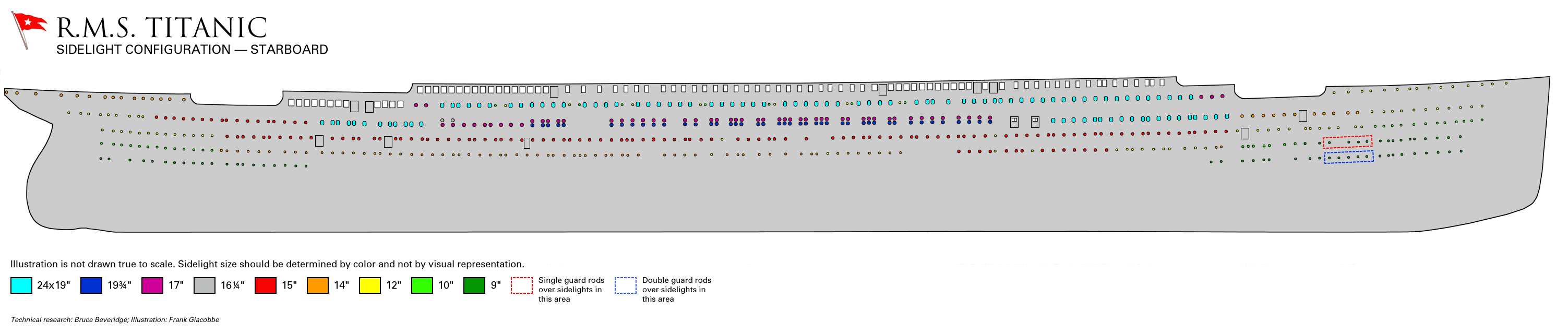 В идеале - лучше комбинировать эти книги: Titanic Ship magnificent и Гарнеровскую Titanic modelmakers manual. В последней хорошо все представлено по надстройкам итд, но скудно по корпусу. Также книге в Гарнера на развороте есть боковой профиль судна и теоретический чертеж, но последний не так ценен, учитывая, что в сети свободно лежит оригинальный HW "Lineplan".