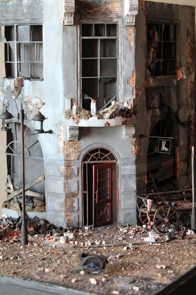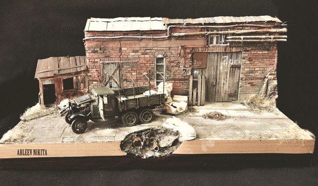Строения отлично сделаны. Могу предложить вариант для изменения. Подбери фигурки так, возле авто посади раненого бойца, рядом с ним фигуру бойца делающего ему перевязку. Приоткрой дверь склада и рядрм поставь фигуру бойца или две которые с опаской хотят войти на склад.
