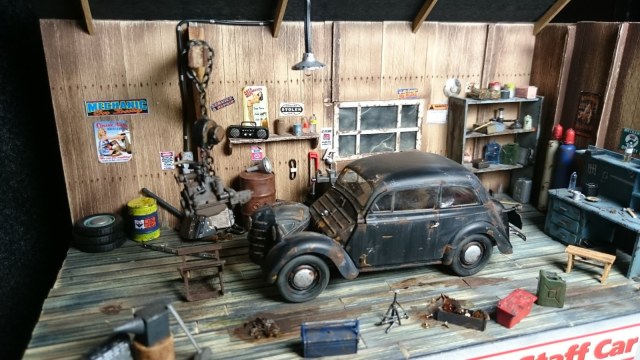 Судя по описанию была проделана долгая работа. Только смотрится работа пустовато. В гараже очень пусто и скучно, пару плакатов не спасают. В таком масштабе можно сделать много чего интересного. И вопрос, зачем было делать каждый кирпич отдельно?