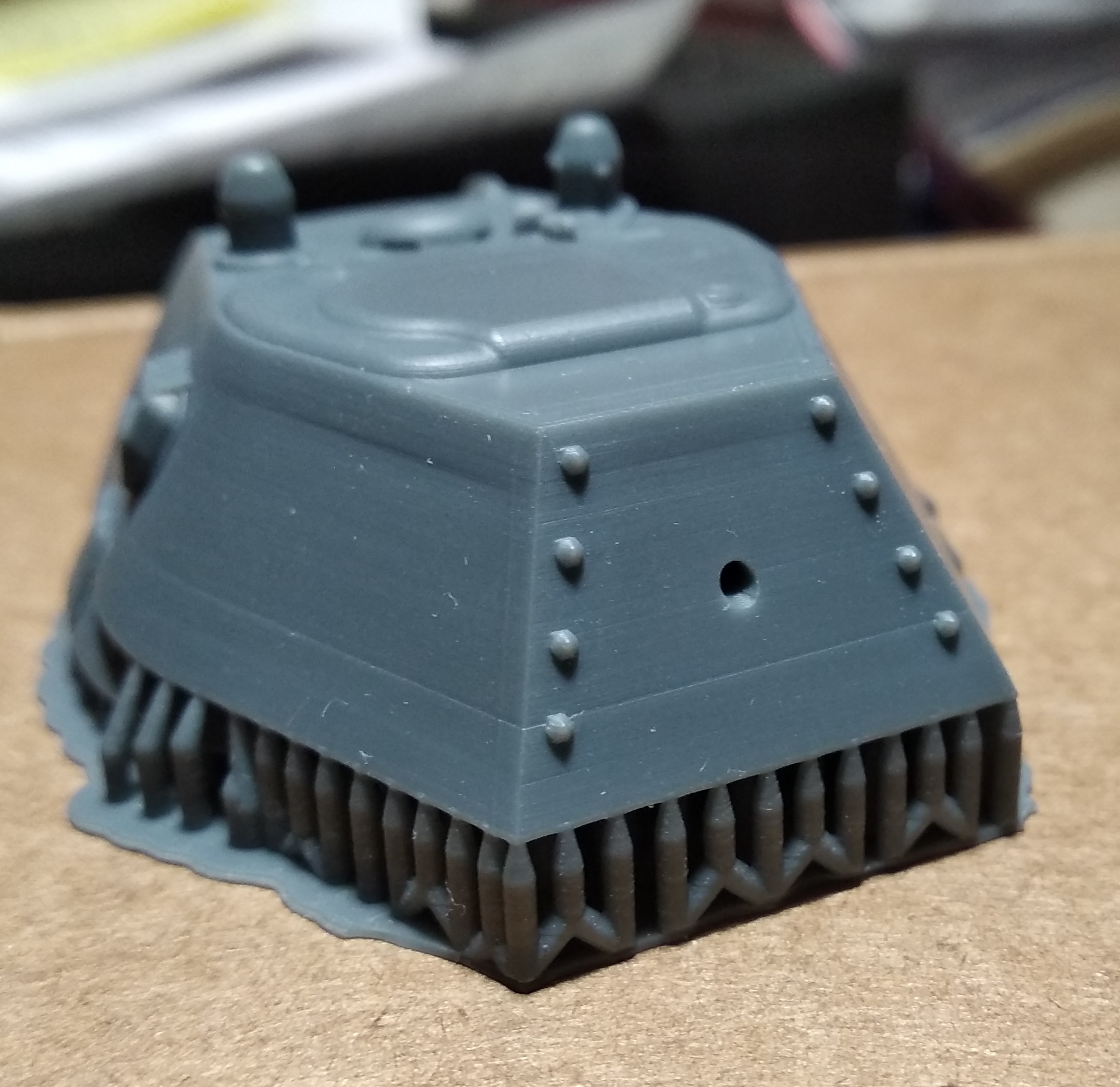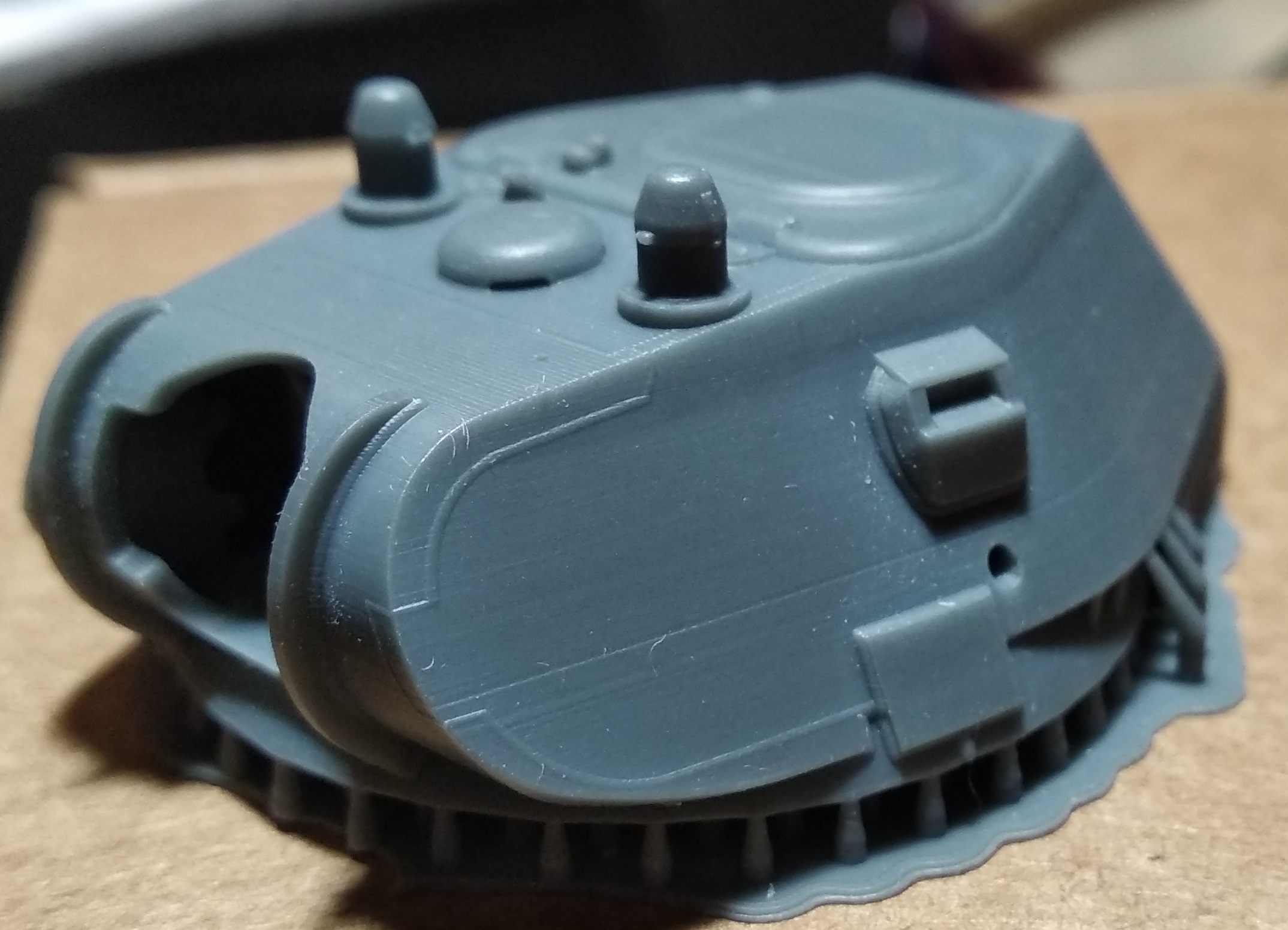 Всем привет! Вопрос к сообществу. Напечатали башню (43 масштаб) на FormLabs (печатал из соображений цена-качество, можно и за 1500 за кубик, но дорого для серии). Замысел на картинках и результат. Помимо того, что напечаталось несколько криво. Материал смолы очень хрупкий. Цель тиражирование без применения литья и пост обработки (по возможности). Вопрос к сообществу. На каком принтере печатать и какой смолой? Может кто возьмется за это дело. Да 3D модель сделана в масштабе 1:1, если кого интересует больший масштаб не вопрос. Меньший надо дорабатывать модель.