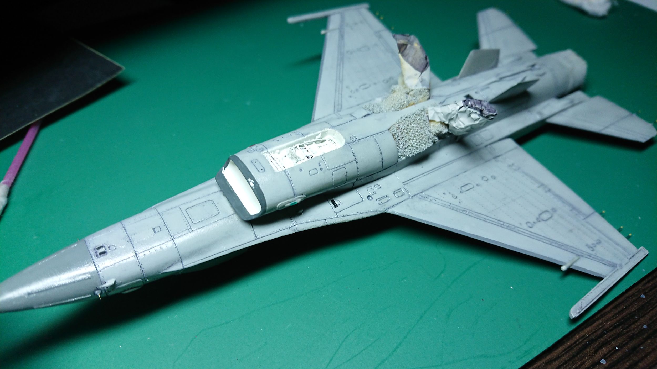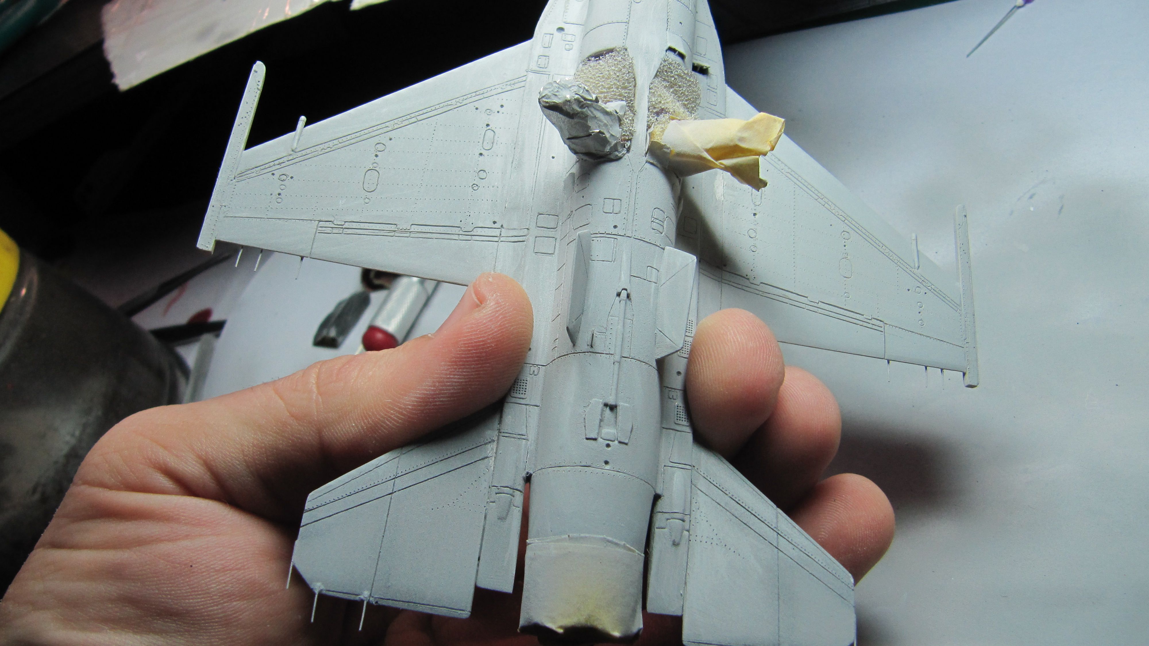 Сейчас идут всякие мелочи, окраска ... кромка воздухозаборника, всякие лючки, стекатели статики на кромках , и окрас прочей мелочужки и дело уже подходит к нанесению декалей.